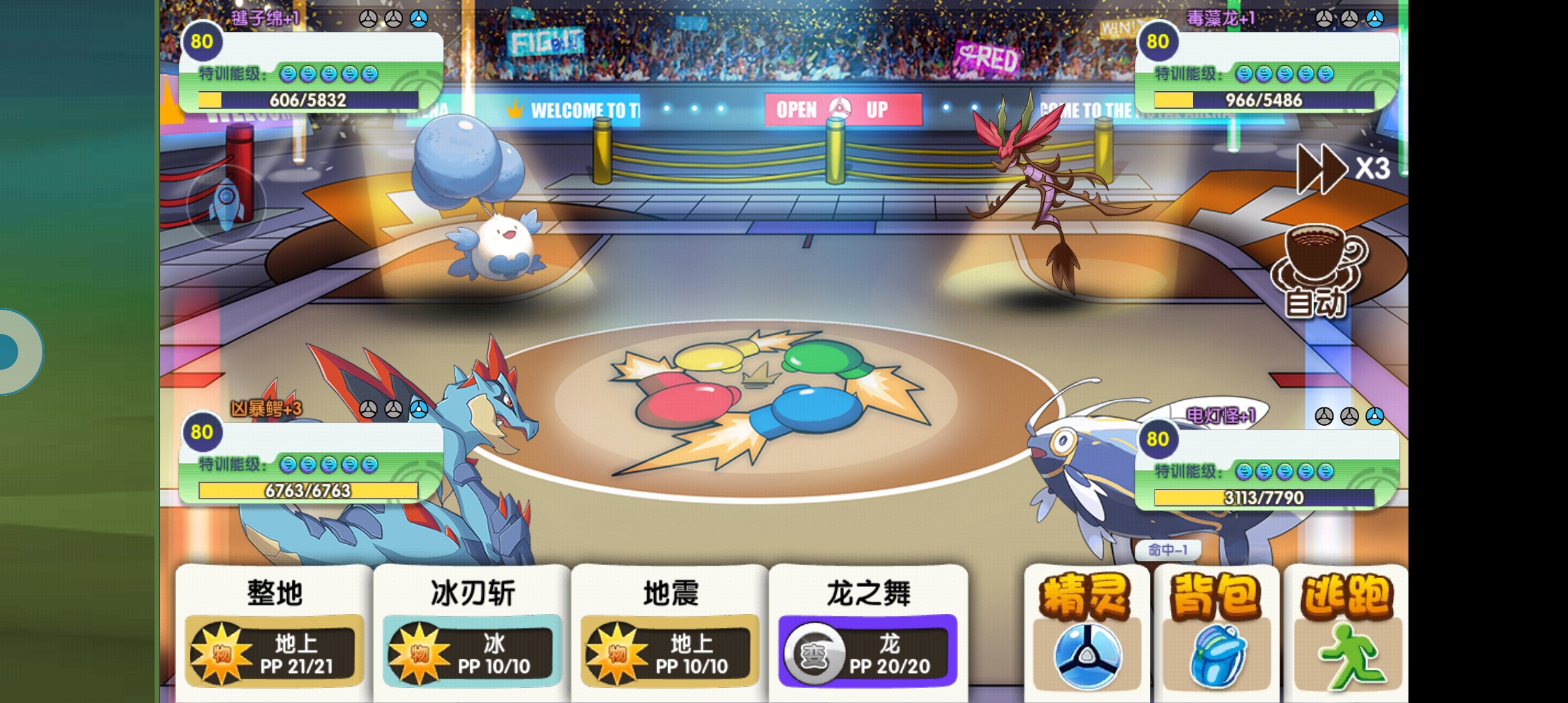 但是地震还是要带的,因为这个群体招式实在是很香除了地震和整地之外,还有这个喷水打雷暴风,这些都是群体伤害所以说要多多使用会群体招式的技能就行了