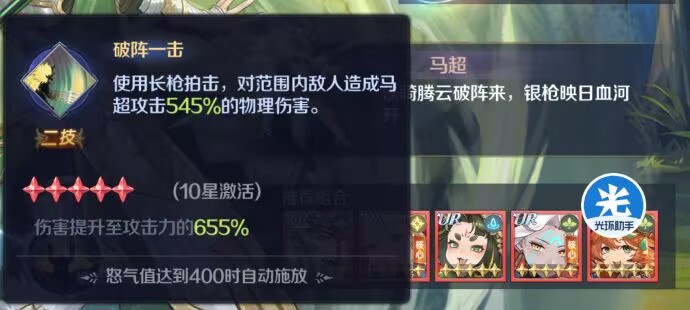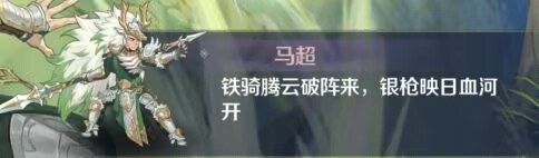 因此马超最佳配队就是物理队!可以提升队友的输出能力,自身也有输出还可以帮队友抗伤害。
