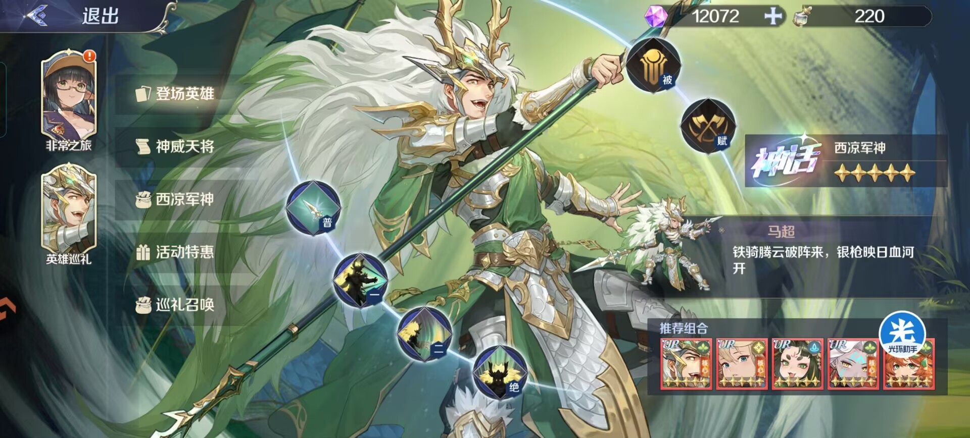 上期给大家带来了【西凉军神:马超】详细的技能分析和强度结论,本期小狮子继续给大家带来军神马超的阵容玩法配队思路。
