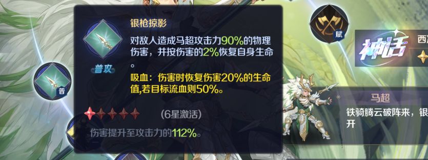吸血可以从20%提升到50%!极大加强了马超的生存续航能力。