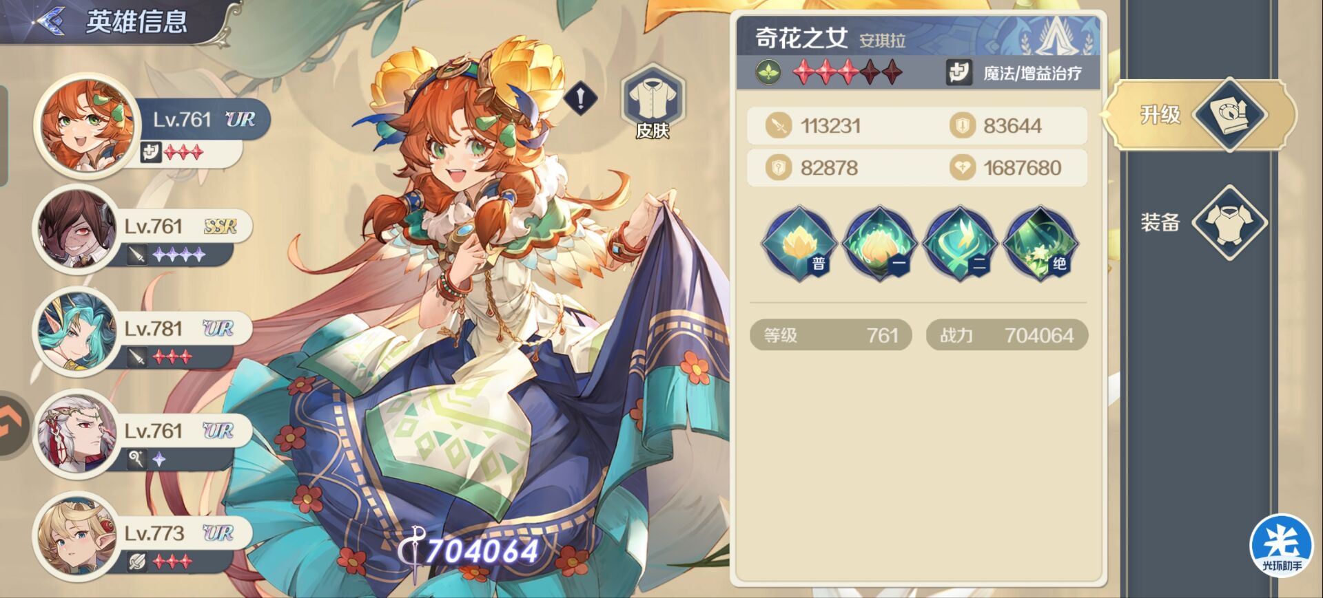 所以搭配上物理输出角色比如:【女武神】【齐天大圣】整个队伍的输出效果更佳。