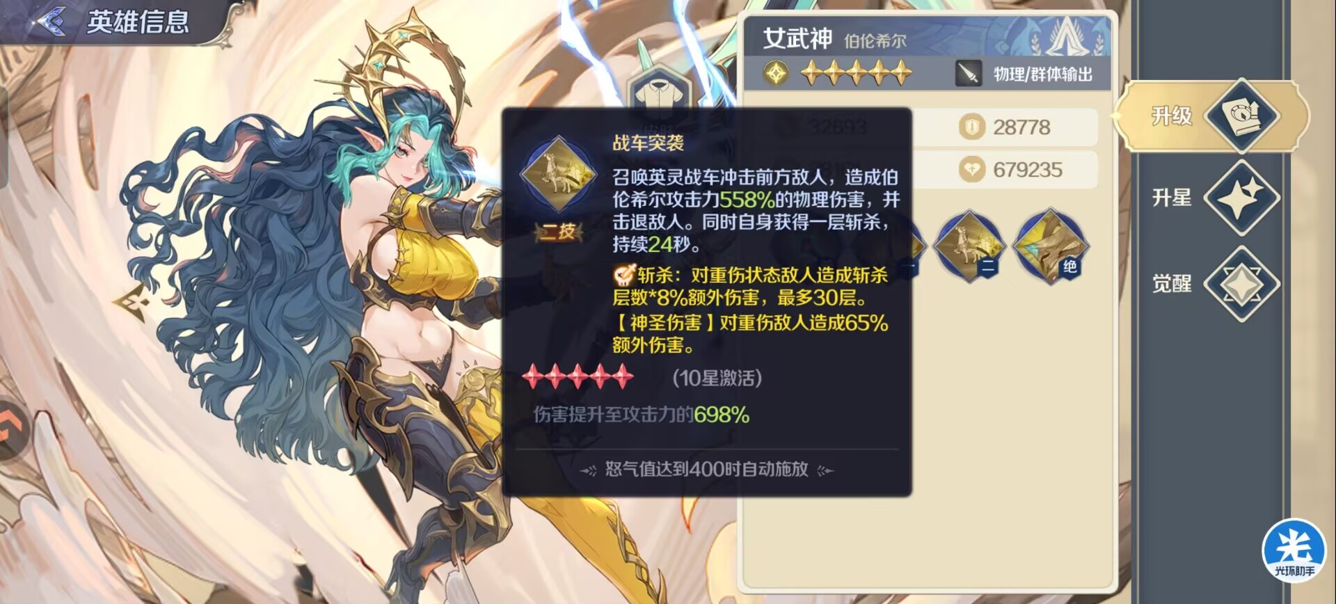 ③女武神:阵容主c!配合马超贞德打伤害,输出超强,还有斩杀伤害可以处决残血敌人。