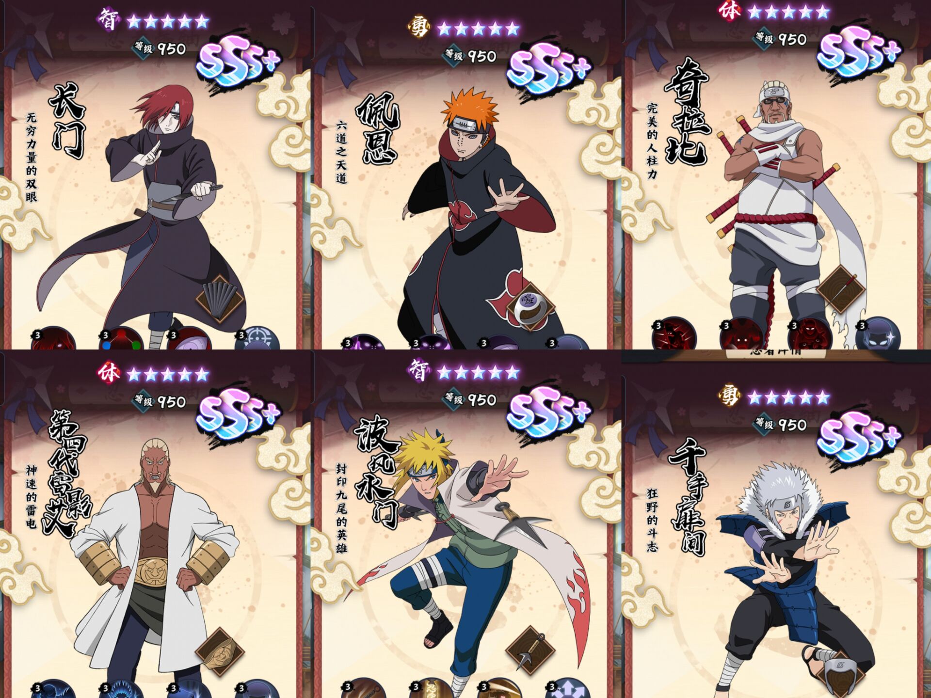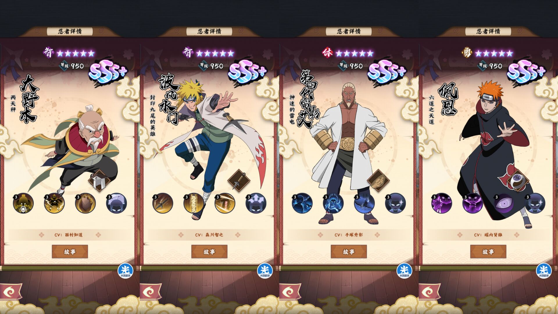 比如补长门的星级、补四代火影的星级。