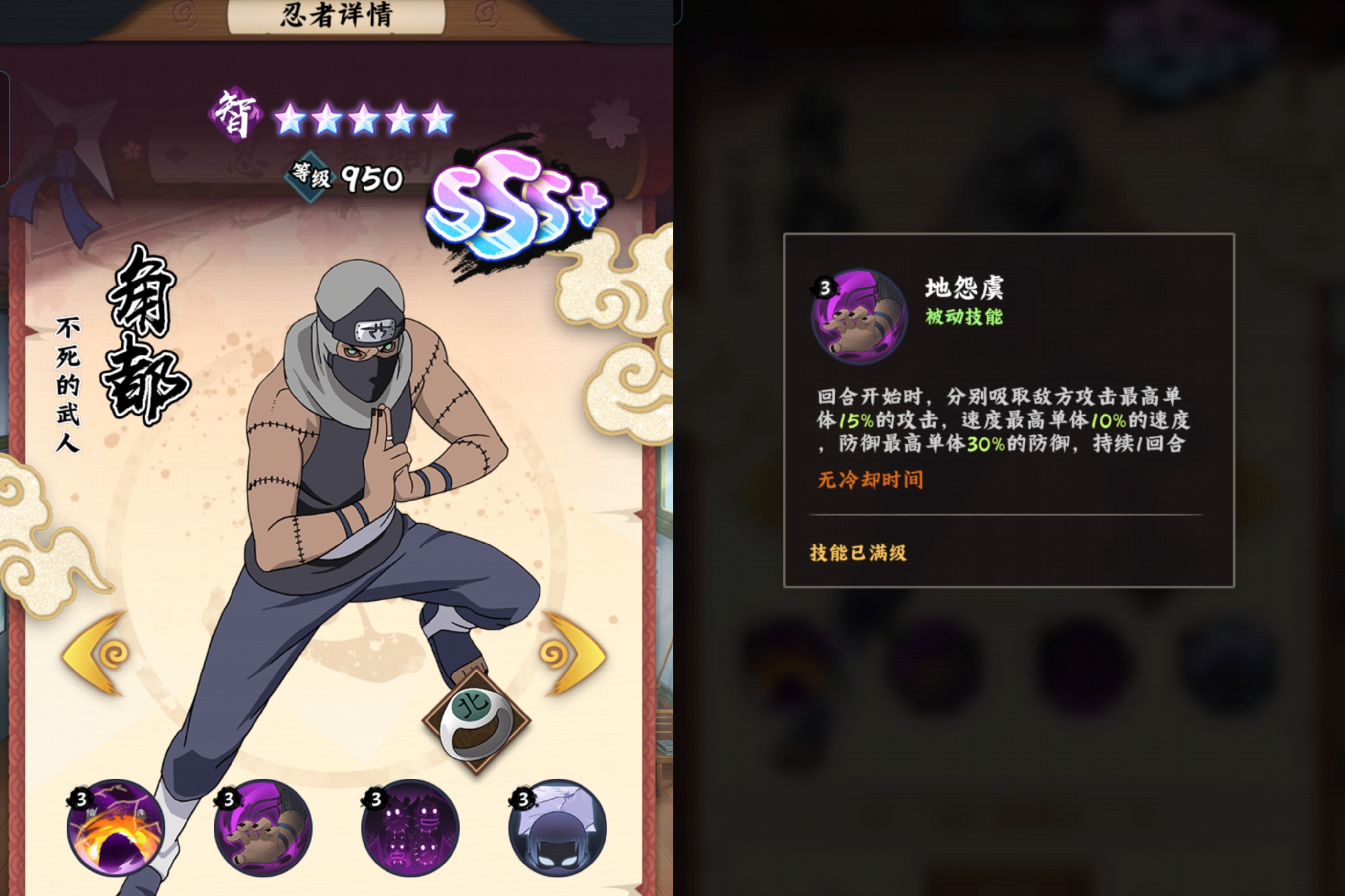 可以把大招的提升三维属性提高到了15%,同时延长到了4回合的持续时间,这点无疑是全方面加强了角都的实力。