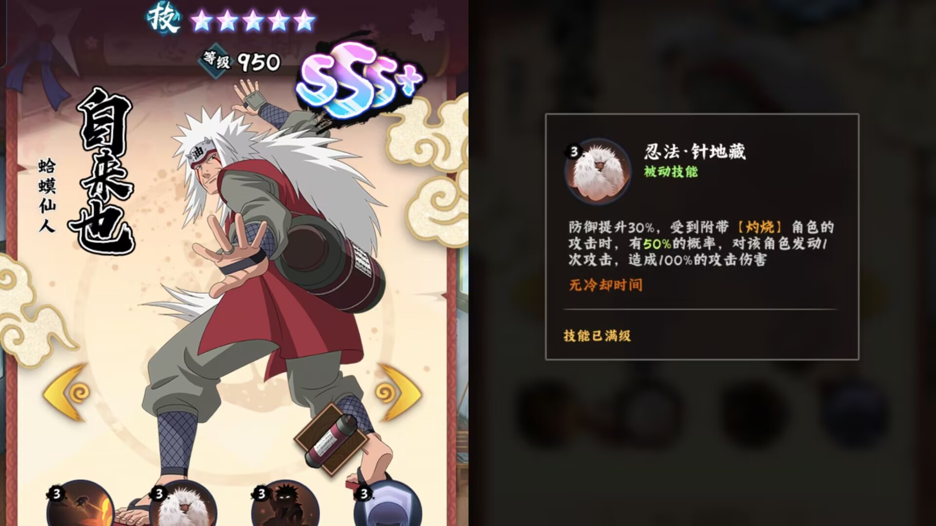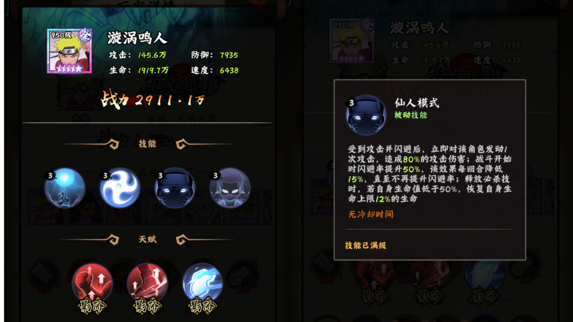 所以结合奇拉比自身技能机制防御加成和抗暴提升整体来看是属于比较适合肉队,主要用于打后手逆风翻盘的一个定位的忍者。