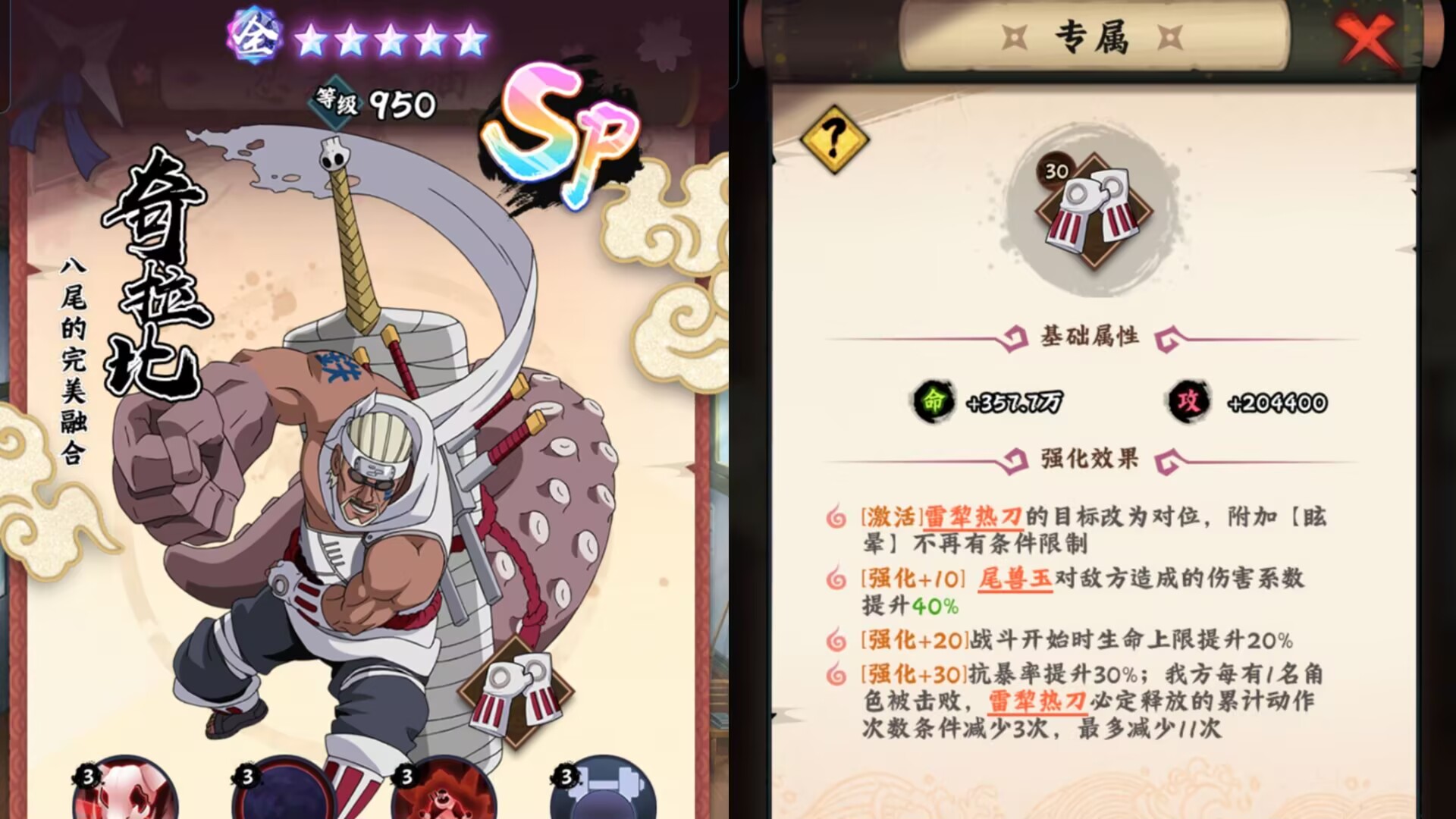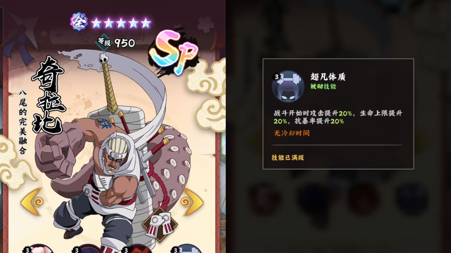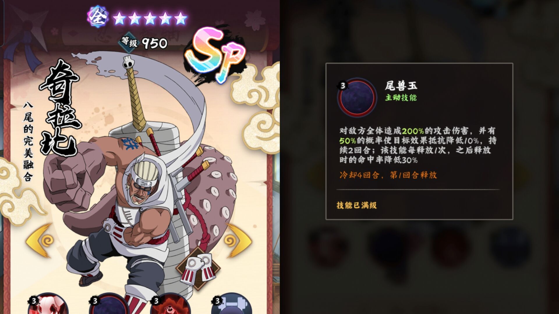 所以培养了普通奇拉比的朋友狮子个人认为还不如养【sp鸣人】比较实在,因为仙鸣的强度不输给奇拉比。
