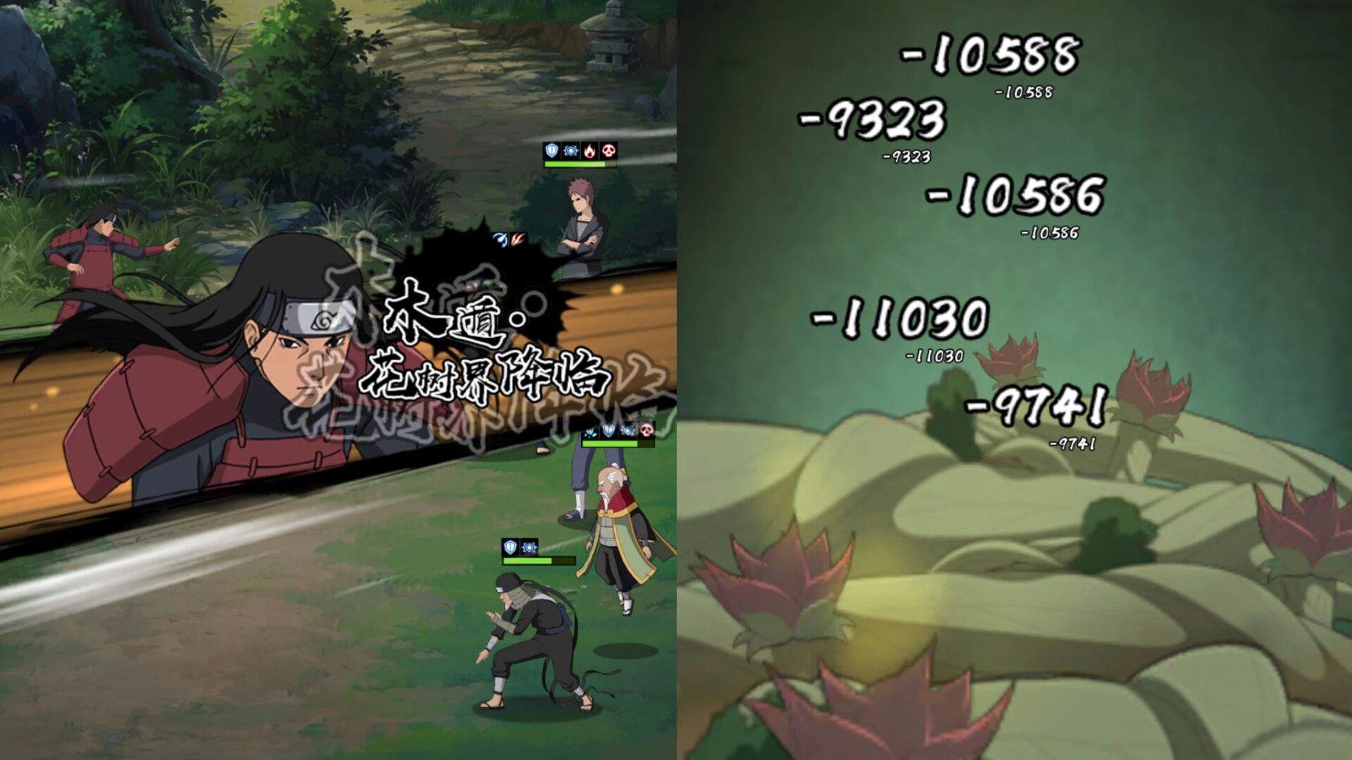 其木遁花树降临:也是全体倍率伤害,同时有概率给敌人附加麻痹控制,也是可以通过消耗千手家纹buff来提升麻痹控制的概率。