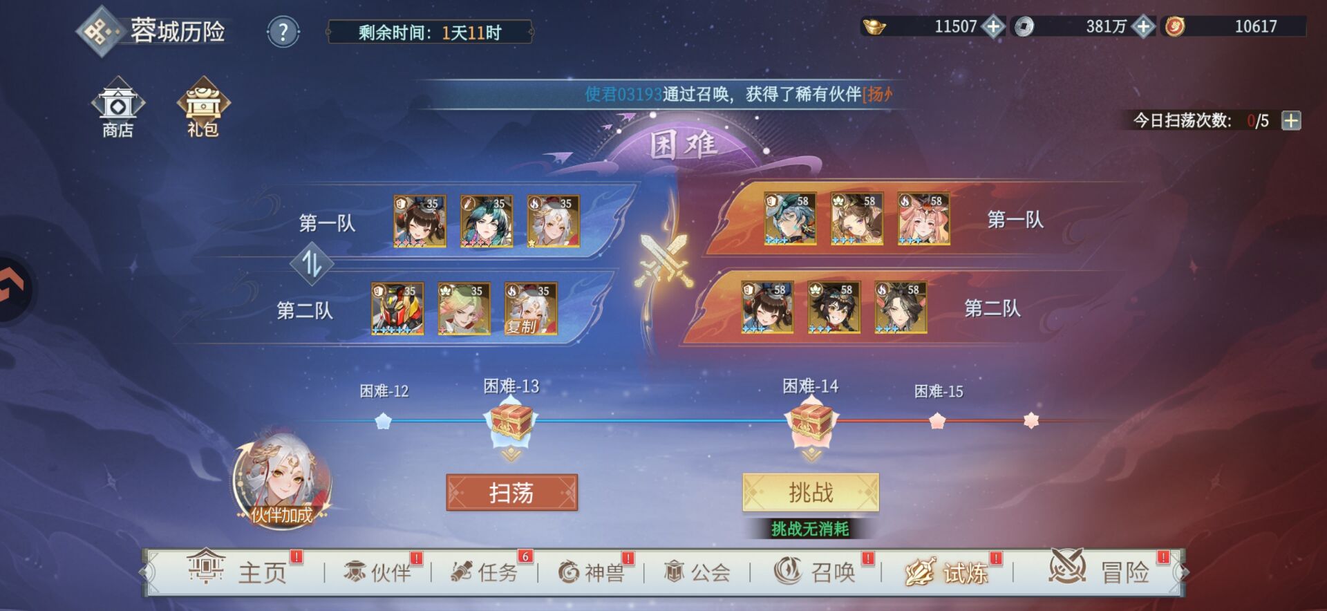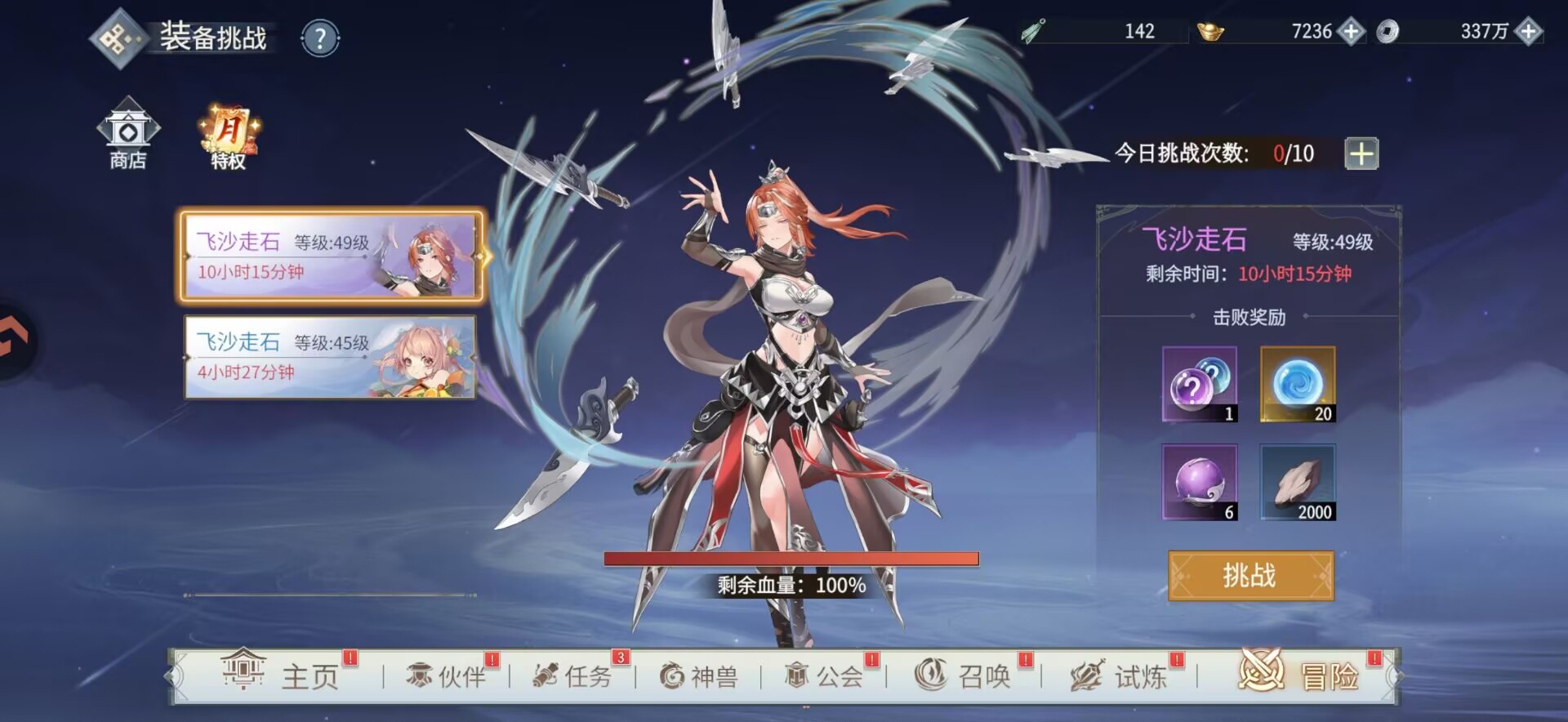 优先打等级比较高的敌人,这样收益更高,而且我们每天也只有10次免费挑战的机会。