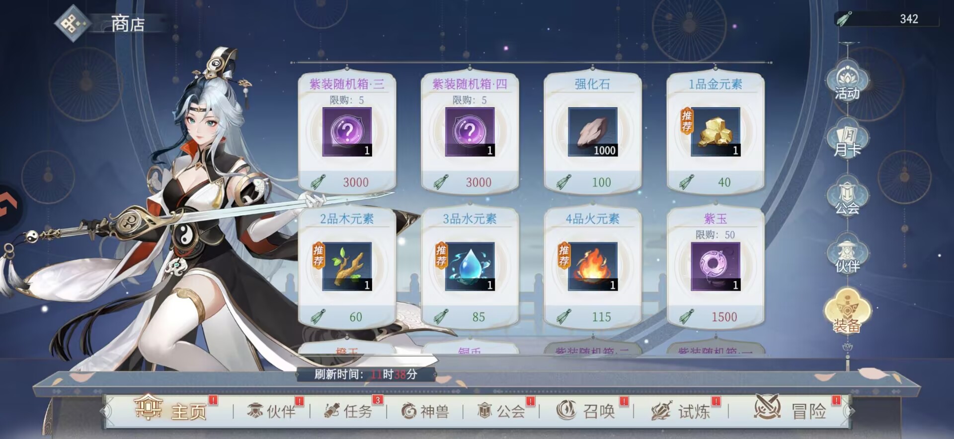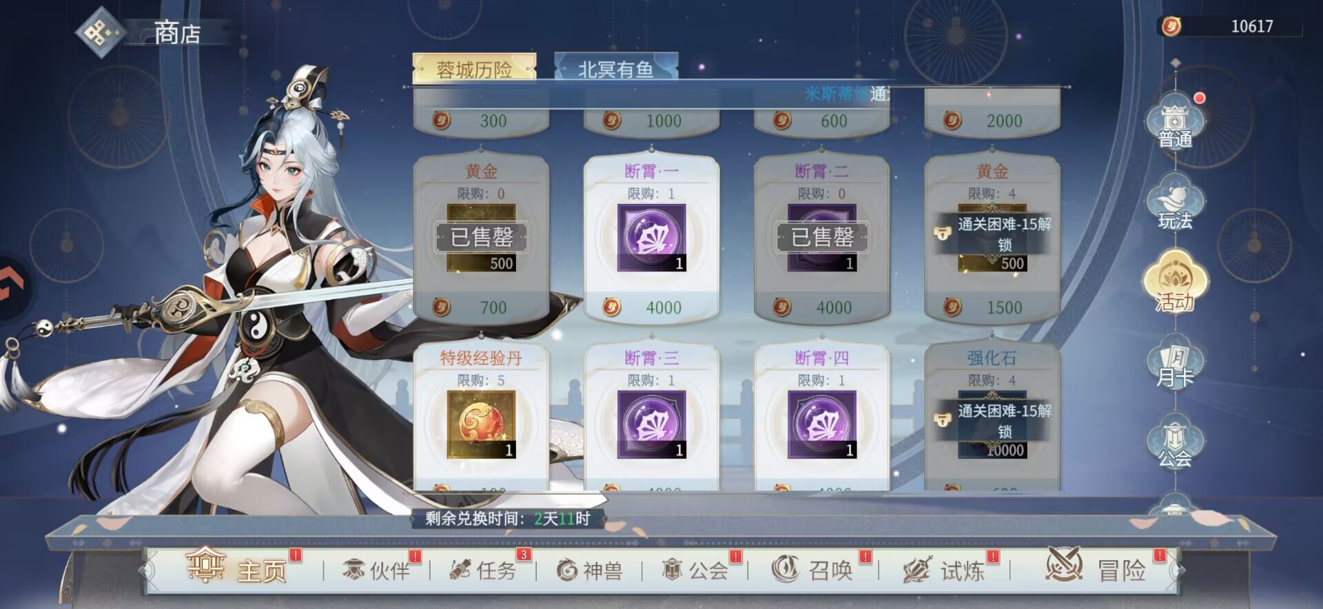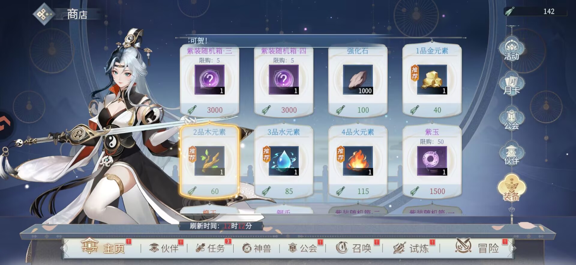 因为我们第二天装备突破材料比较缺,装备突破材料需要在商店兑换,同时我们又得在商店中兑换一些【紫装】给角色使用。