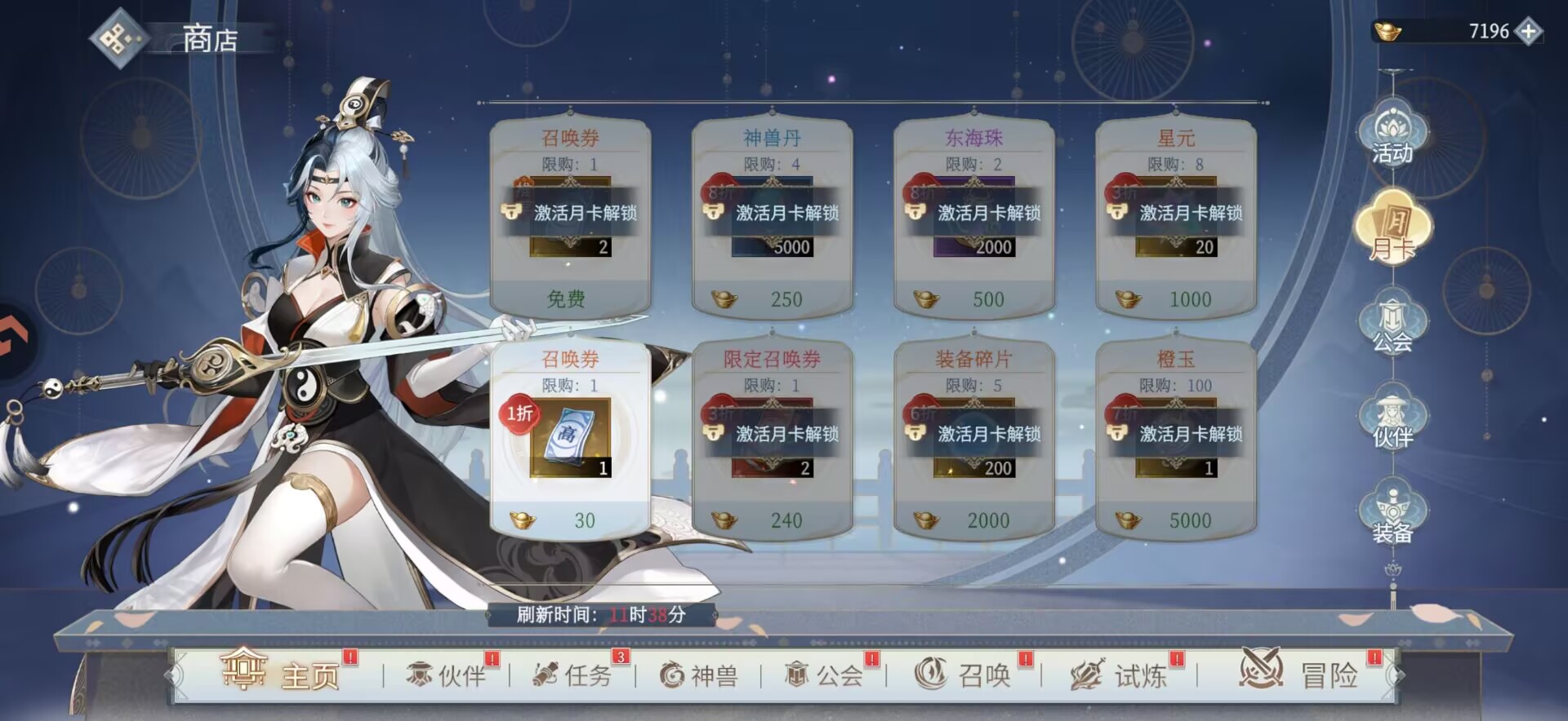 有激活月卡的朋友,可以买限定召唤卷,装备碎片等。白嫖玩家一周以后可以白嫖1个月卡,所以平民玩家前期不建议氪月卡,先白嫖拿月卡即可。