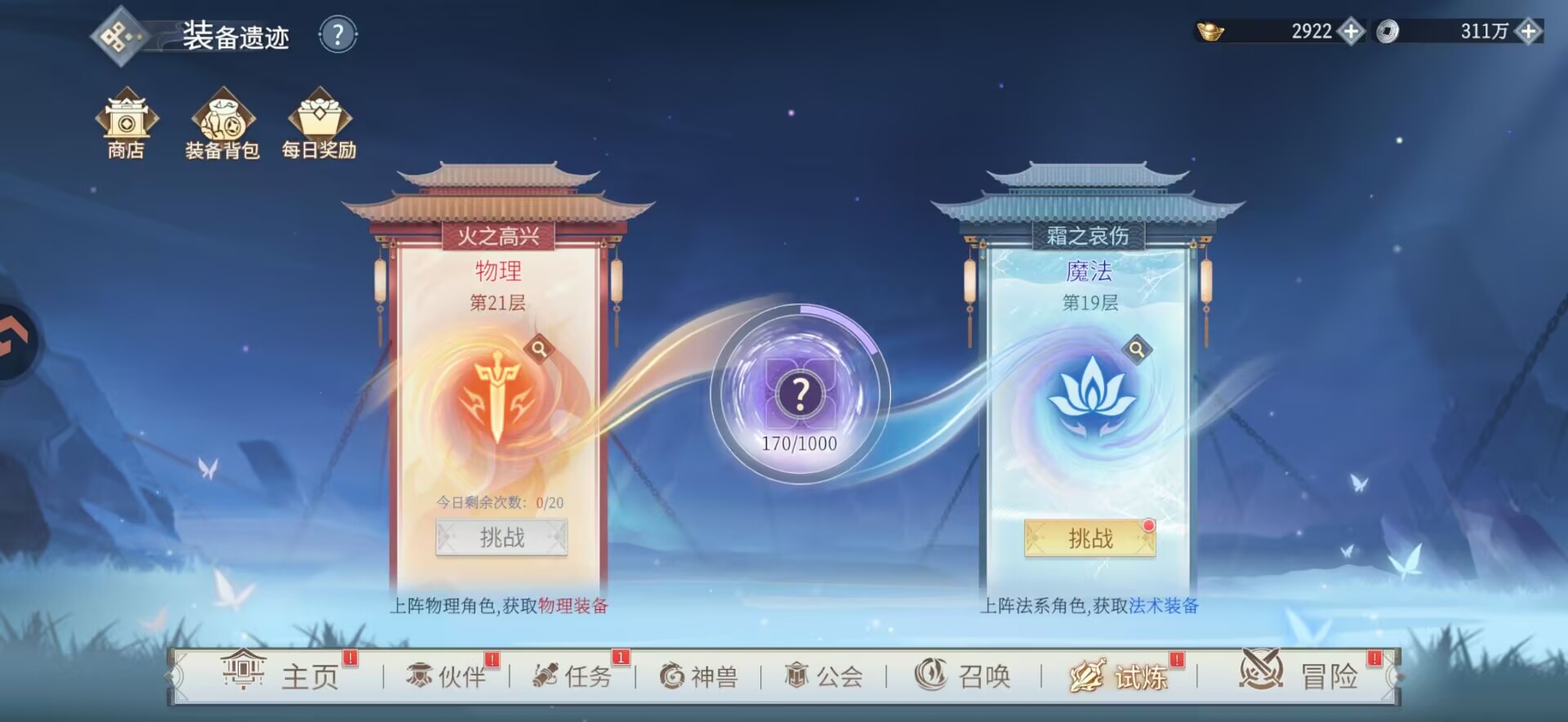 分为【物理装备副本】和【魔法装备副本】。