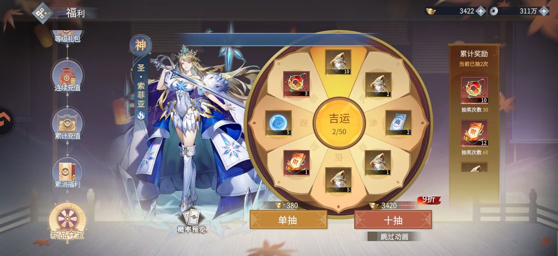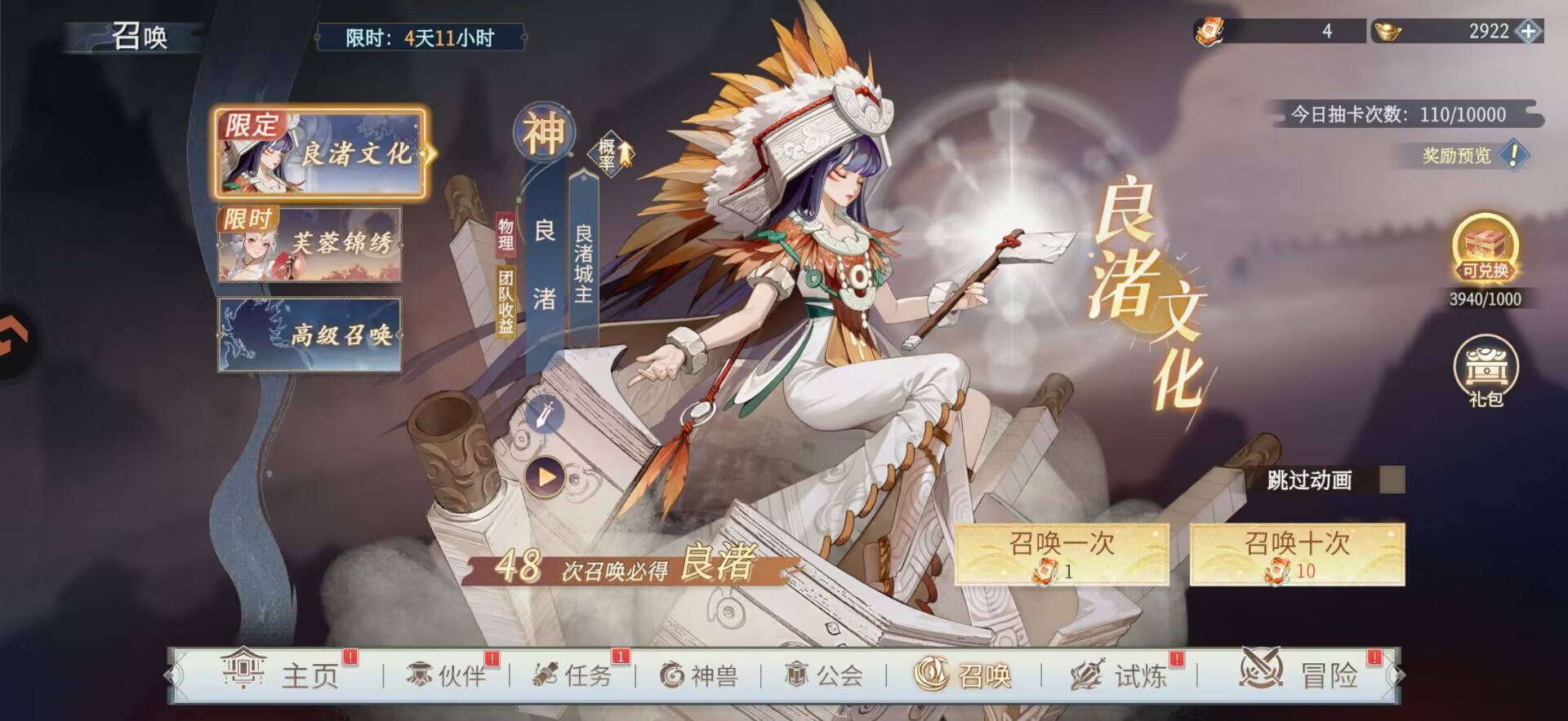 每天只能用元宝30抽或者是用限定票抽取。