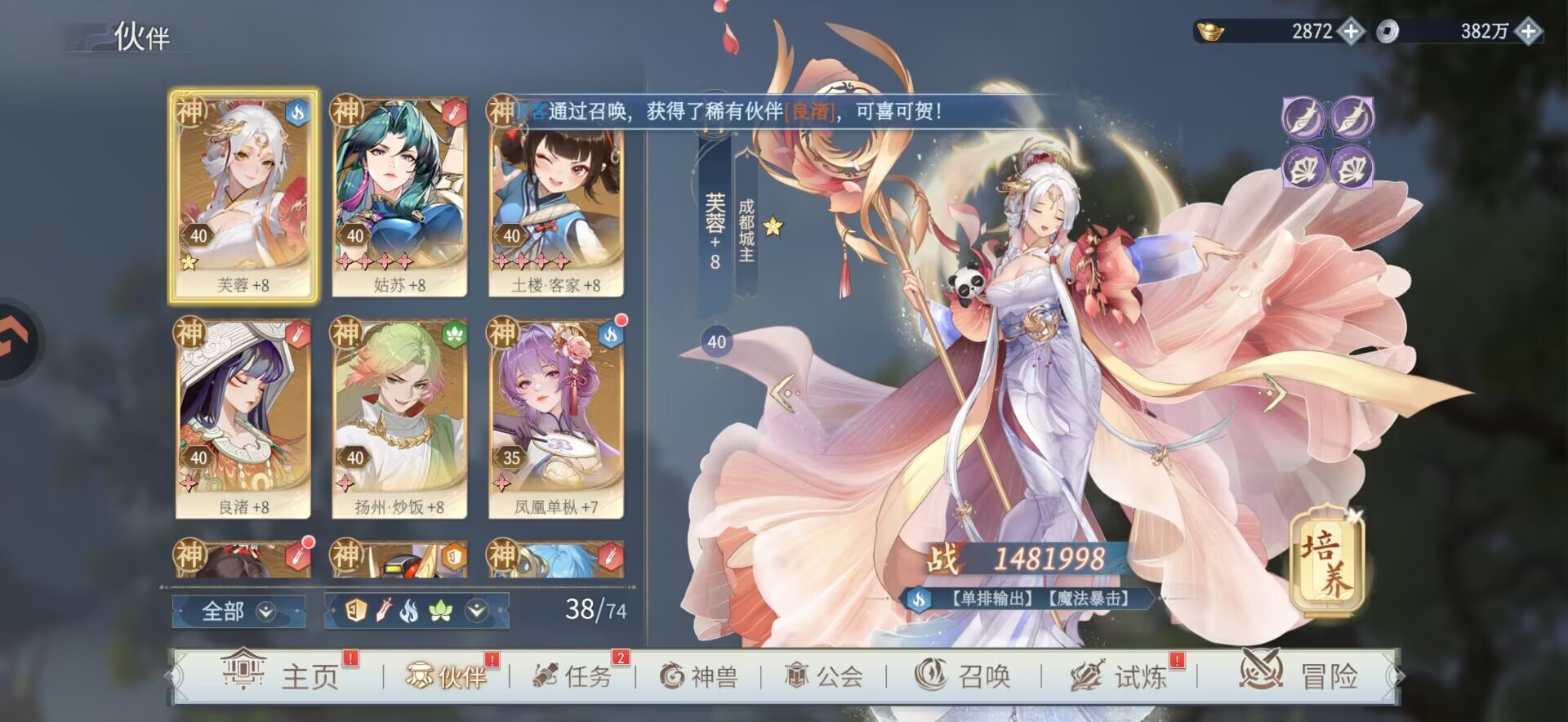 不过建议大家不要学狮子抽芙蓉🌺!狮子只是个人比较喜欢芙蓉,而且因为第一天投入元宝太多给芙蓉了,也没有回头路了。