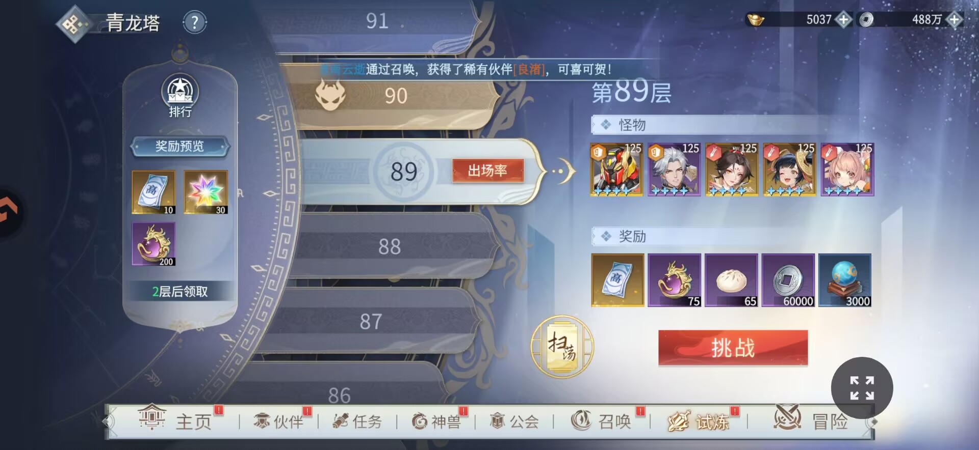 爬完塔记得给神兽强化一波,进一步提升战力