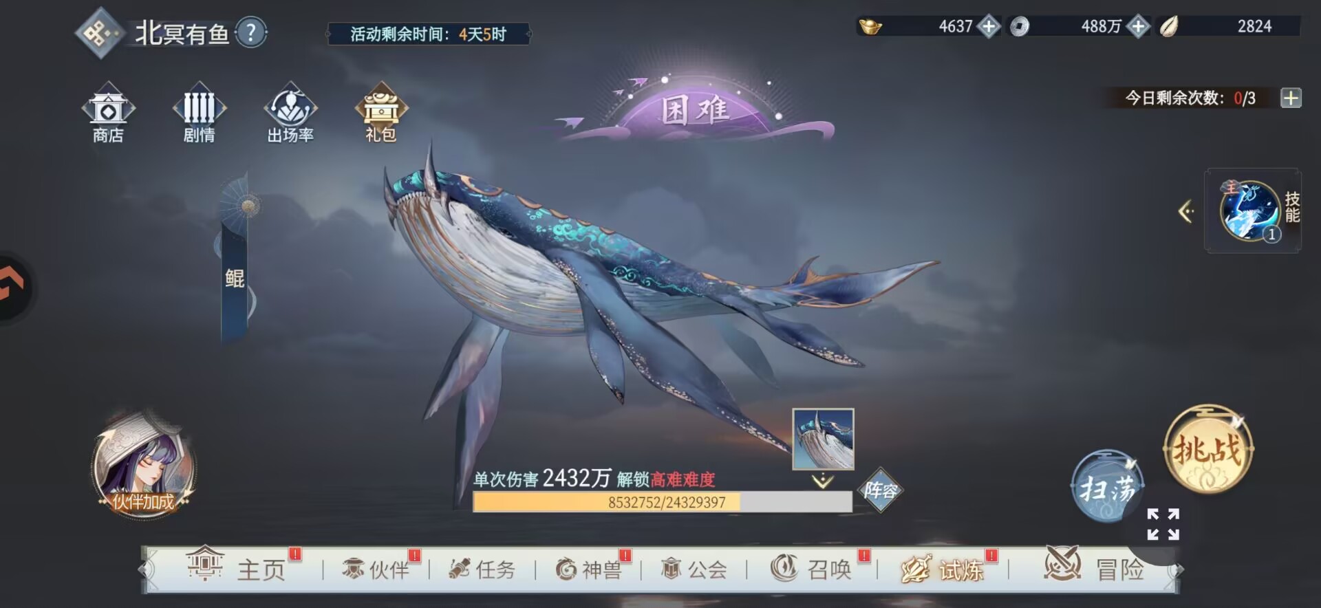 ⑤【北冥有鱼】单次最高伤害: 850万。