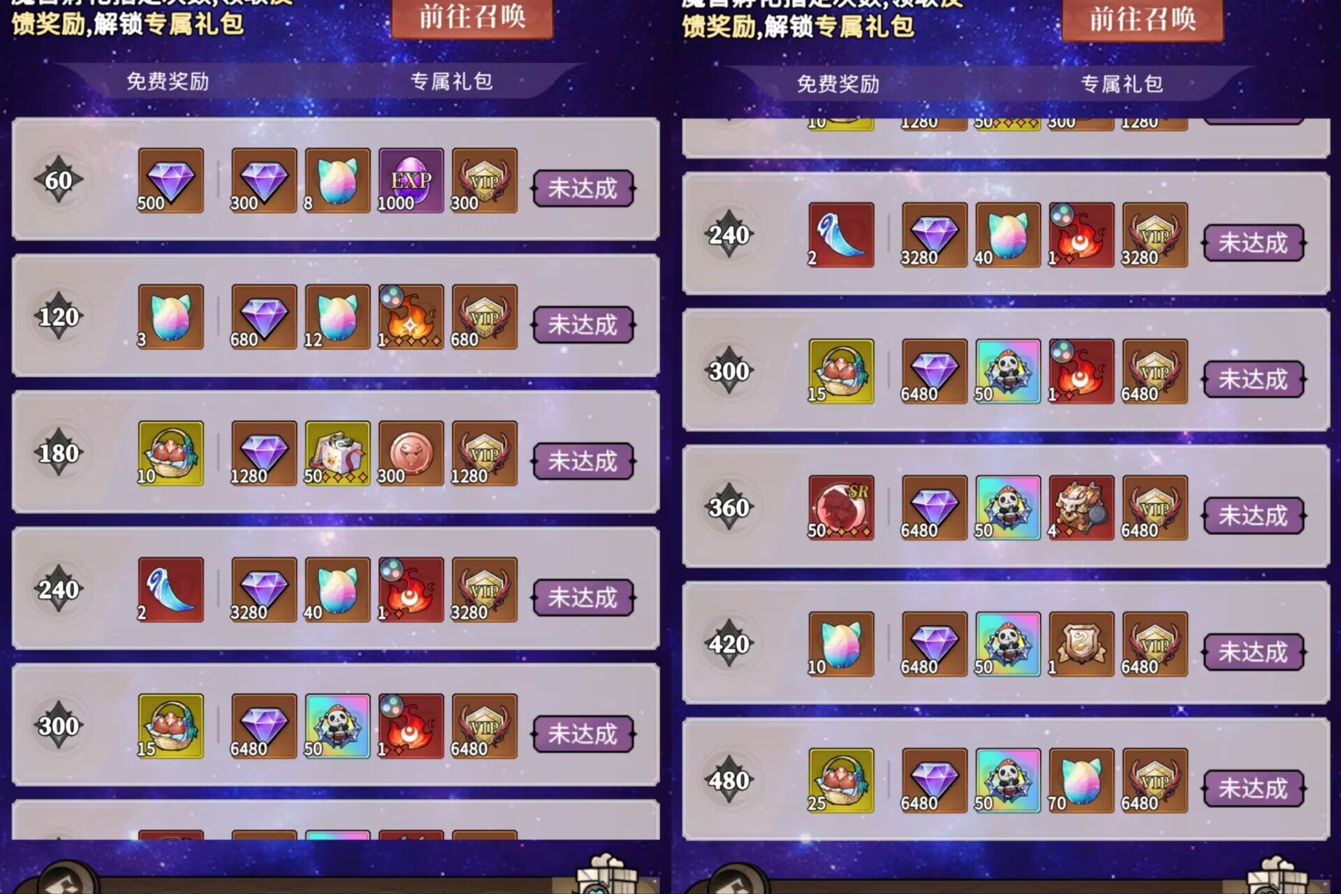 ②免费奖励都是蚊子腿🦵,平民也只能拿到500钻石+3抽。