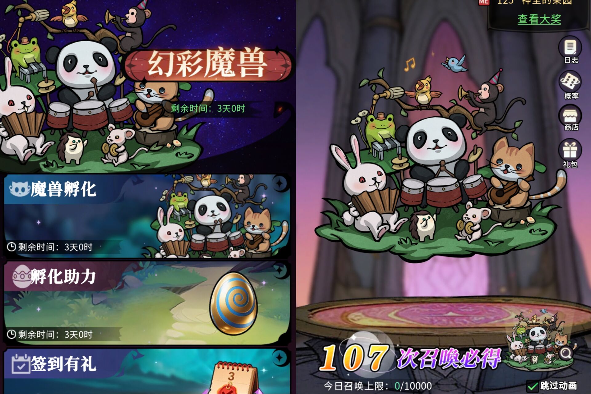 1:【魔兽孵化】活动抽幻彩魔兽的地方。①活动保底大奖就是:哆来咪乐团(熊猫🐼)