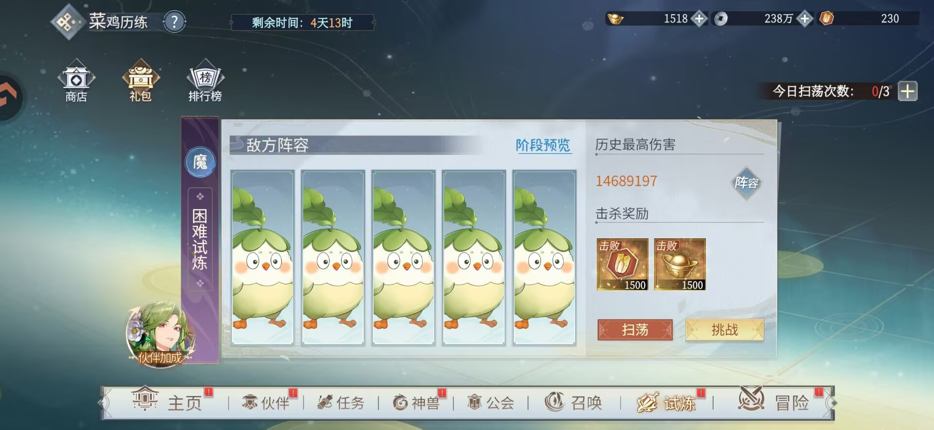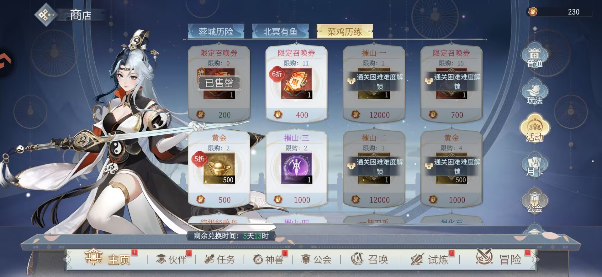 5:【新活动:菜鸡试炼】。田忌赛马活动结束新开启了【菜鸡试炼】。