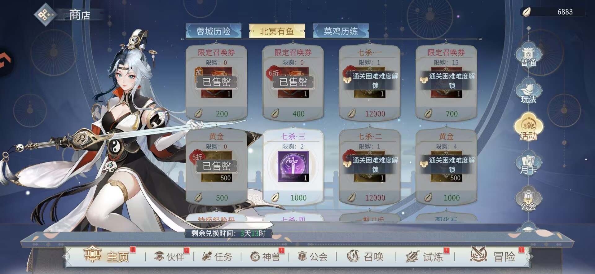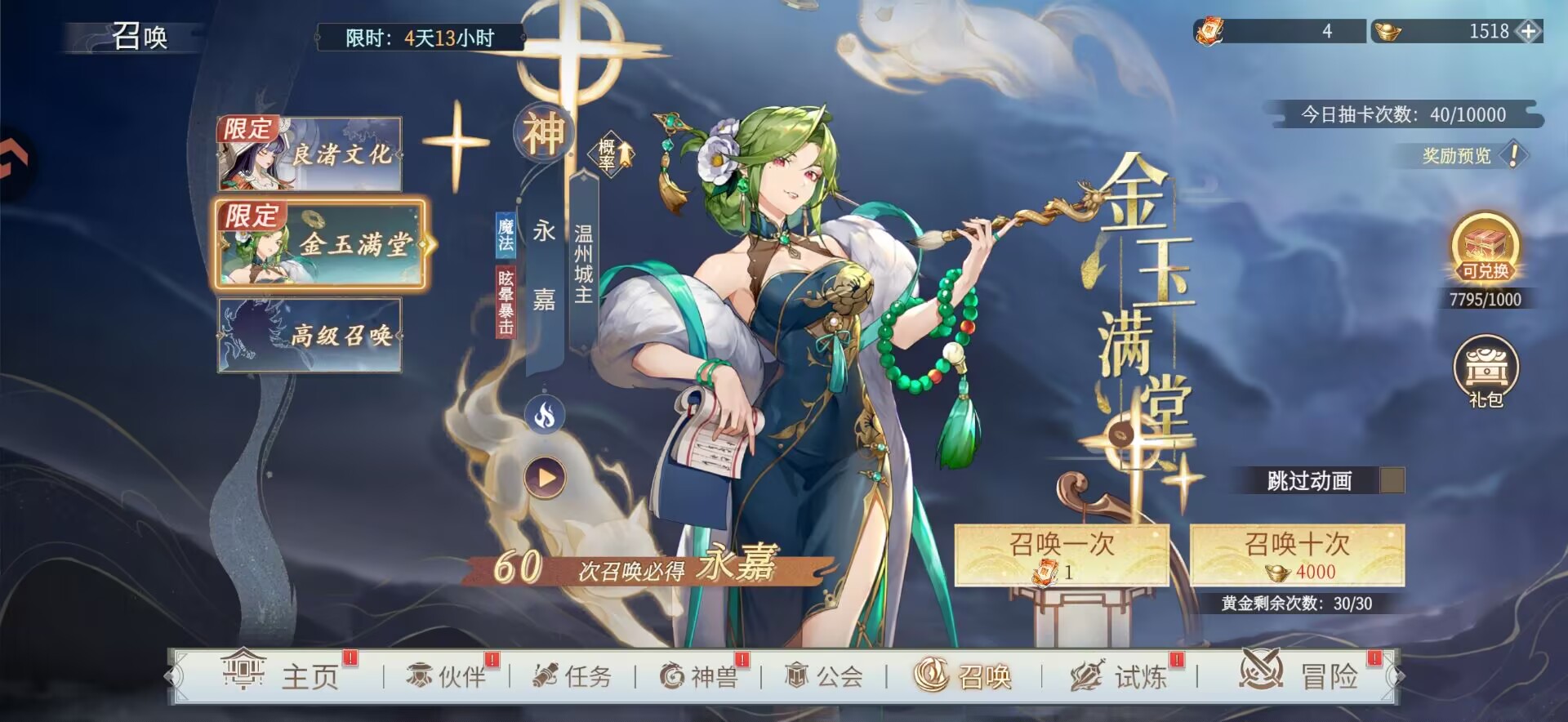 另外一部分元宝可以囤起来,等待后续的其他新角色。
