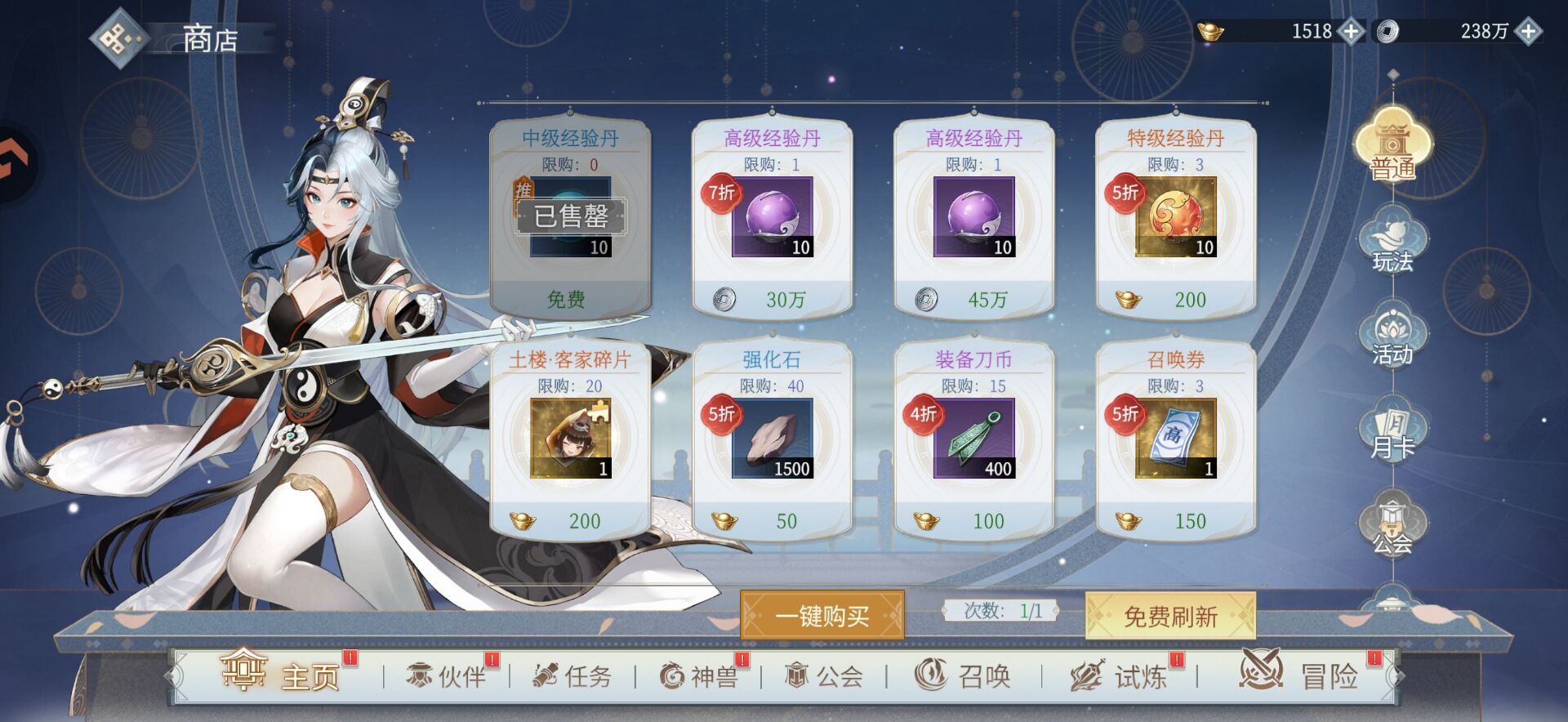 ②其次高级经验丹有需要的话也是可以兑换一些的用于角色升级。