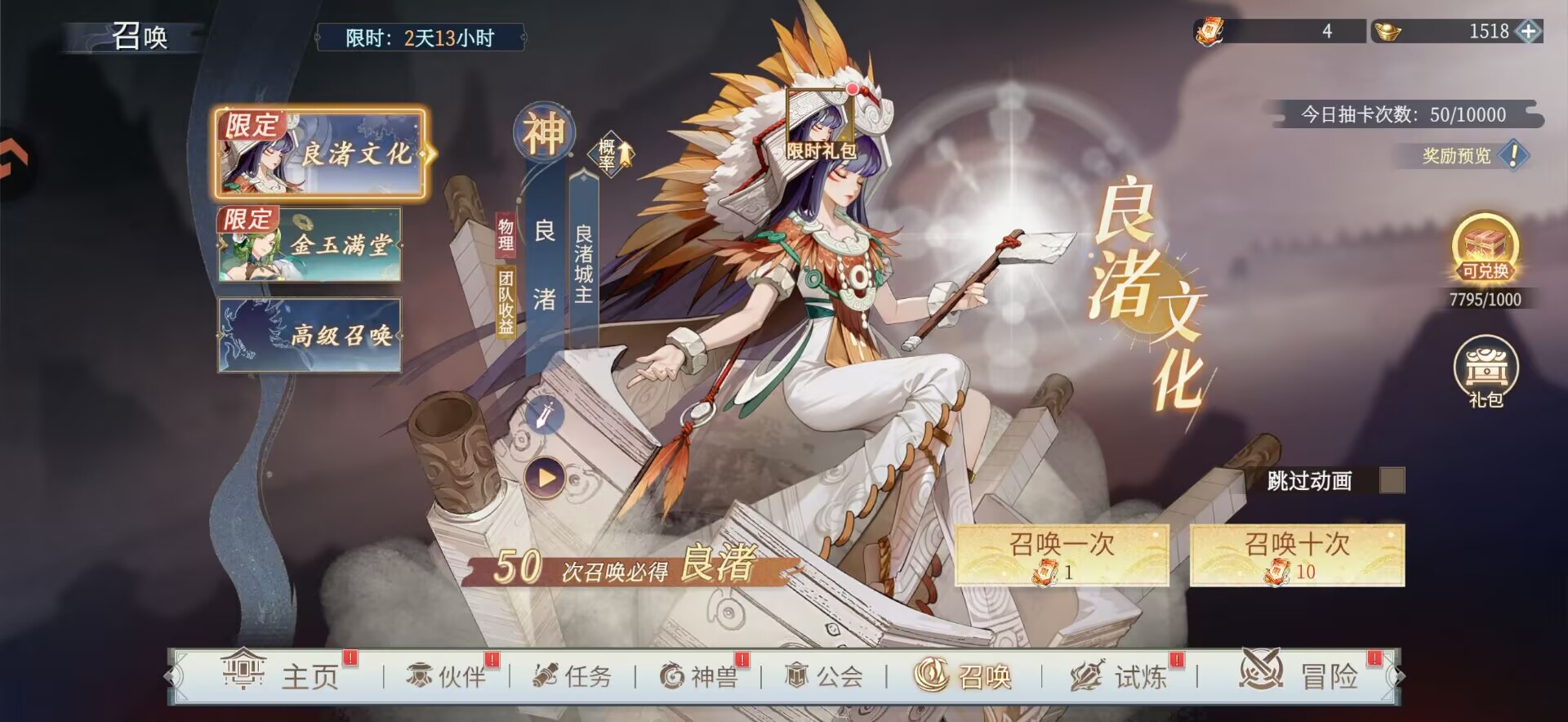 所以元宝一部分可以继续投入抽【良渚】提升星级方便我们后续的爬塔和打装备副本。