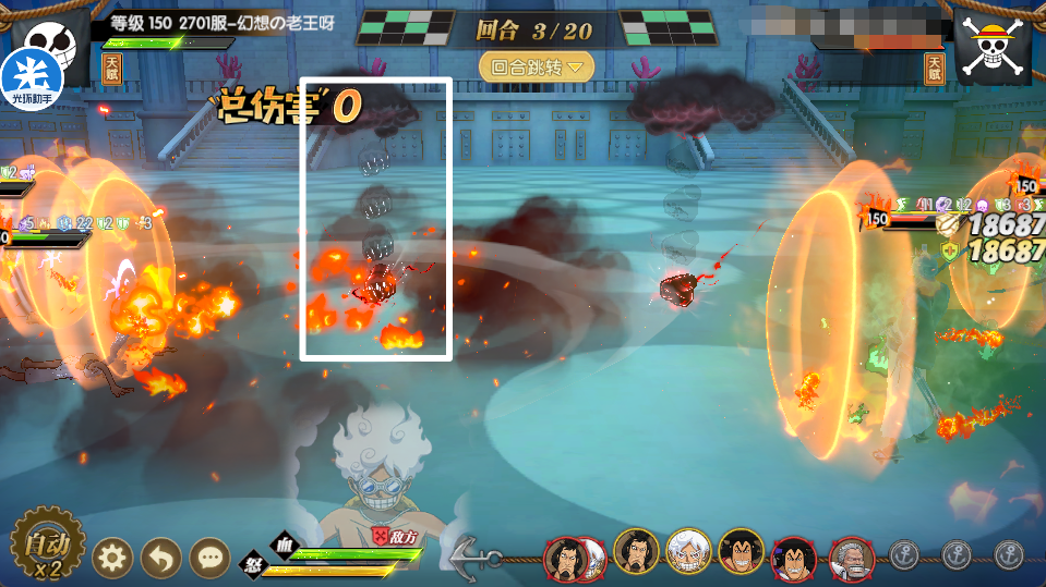 第一种死法:这个时候门神没有绝对的优势别再丢主动+奥义爆盾了,爆不死而且自己会丢失护盾,对面路飞戳戳戳可能就死了!