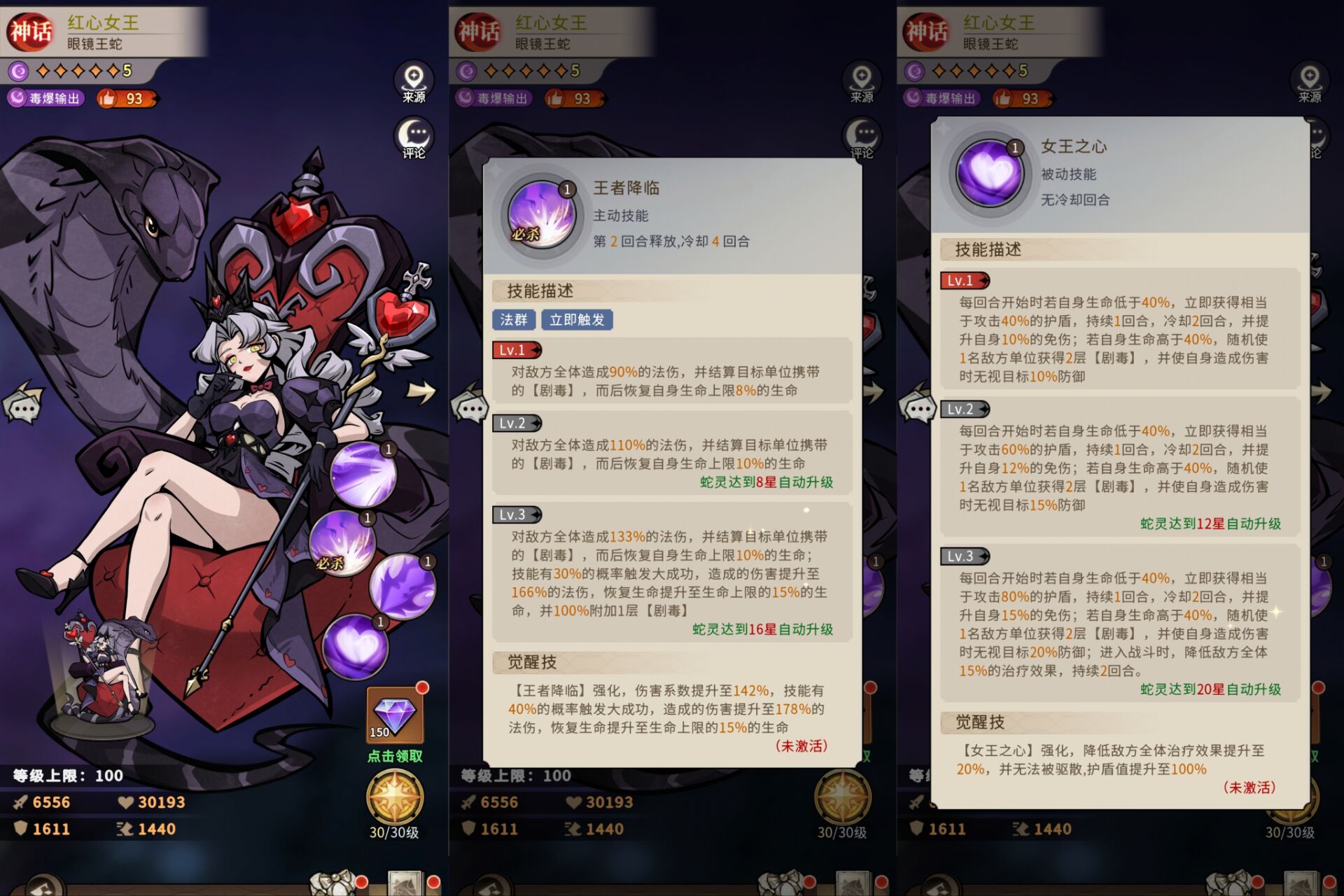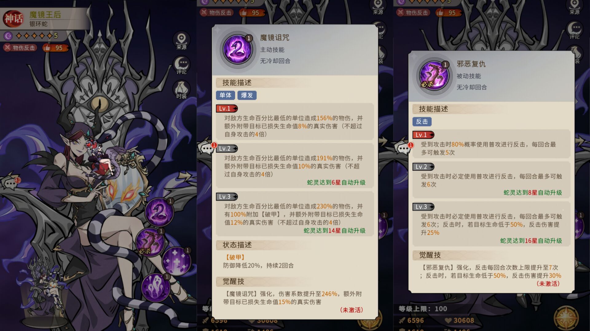 四:【公测白蛇版】平民后期暗队阵容配队推荐和培养思路。1:【魔镜女王】养好以后接下来狮子是比较推荐优先养【八岐女王】或者是【美杜莎】。