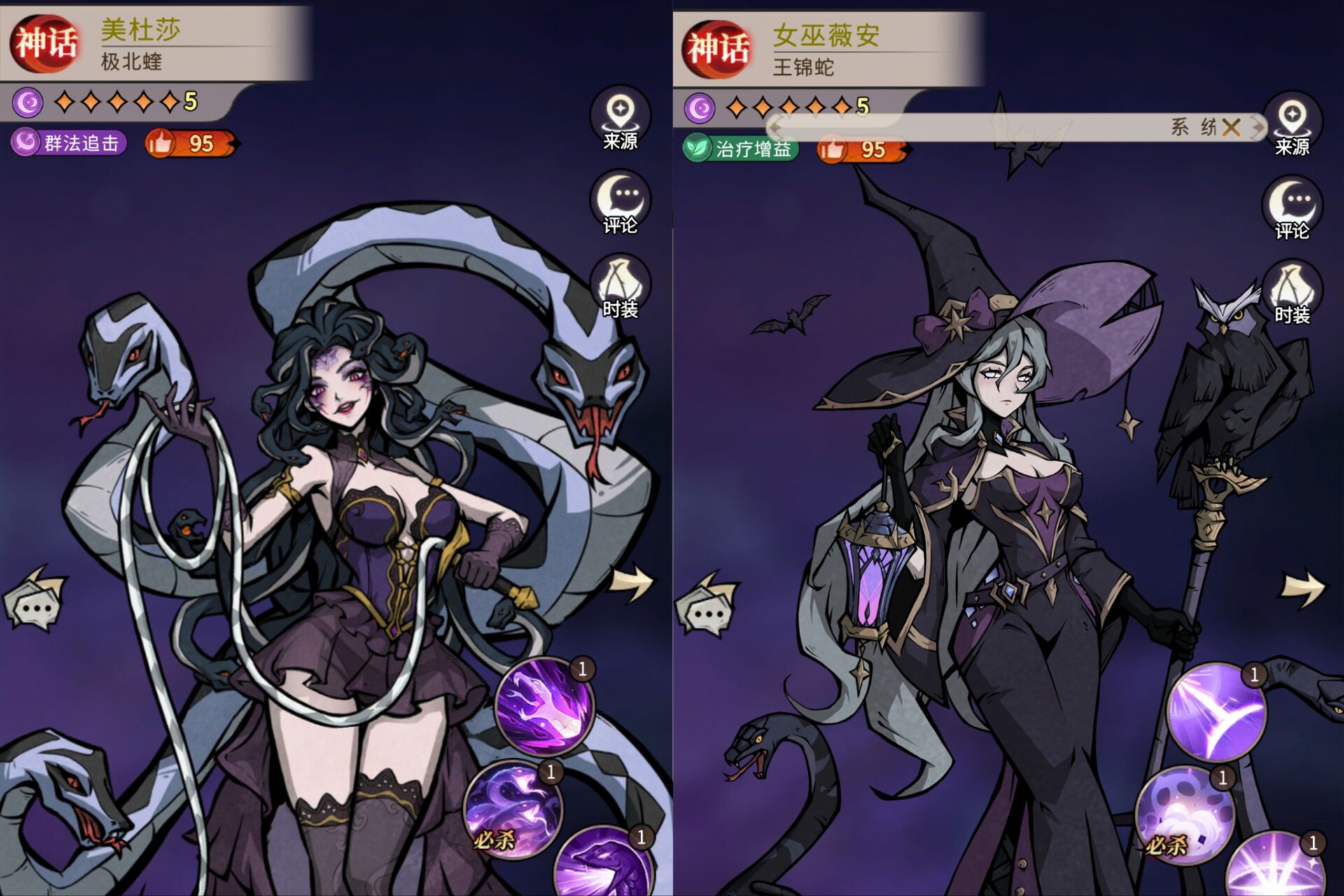 至于平民玩家后期阶段如果是:魔镜王后、美杜莎、八岐公主没有养好前白蛇和青蛇继续用是不成问题的。