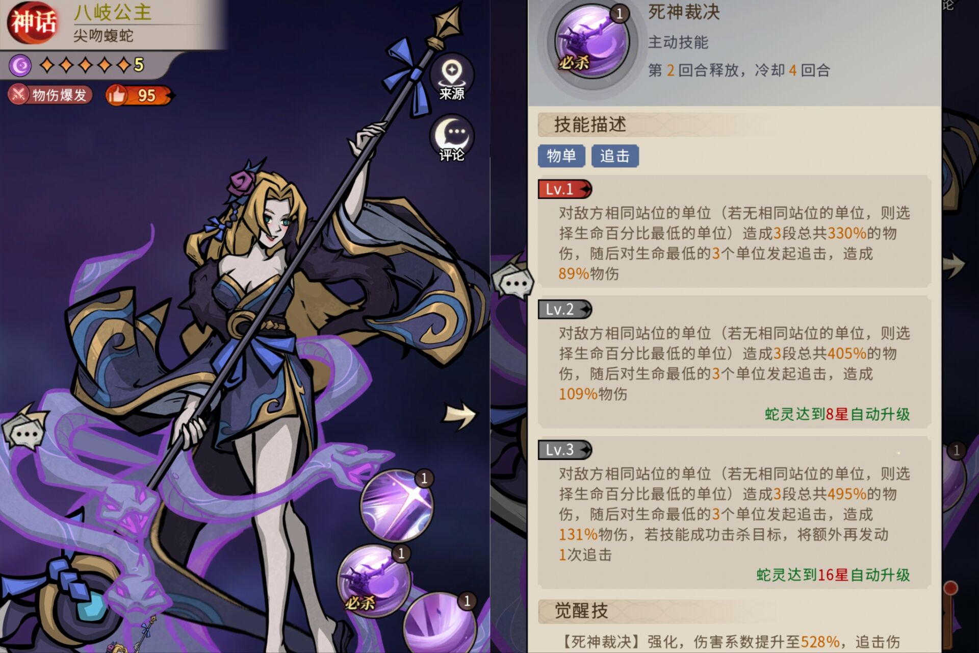 而且八岐公主👸🏻被动叠满以后进入死神觉醒状态可以全方面提升自身的战斗能力,暴击和攻击提升并且免疫所有的控制,不会被敌方的控制打乱节奏。