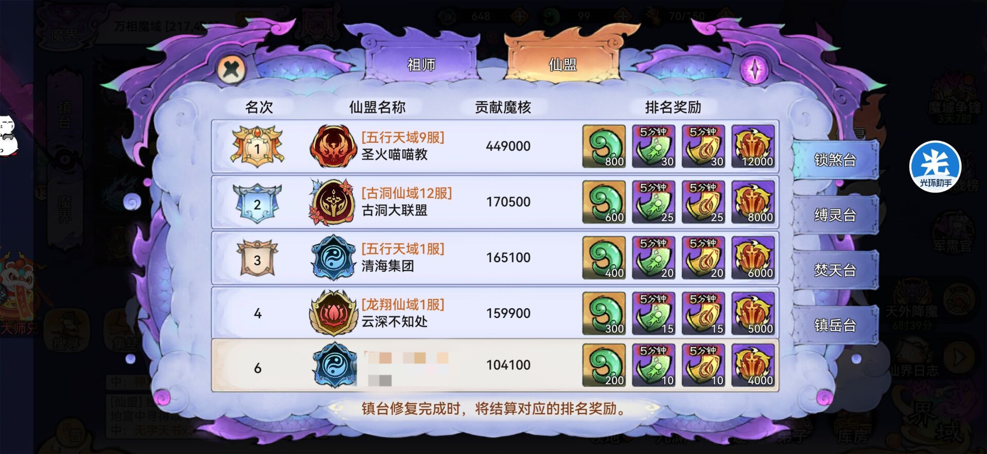 不过这个仙盟排名奖励也是蚊子腿,大家可以不用太在意,有时候反而四个台子有盟友捐更好可以拿到4个台子的仙盟奖励。