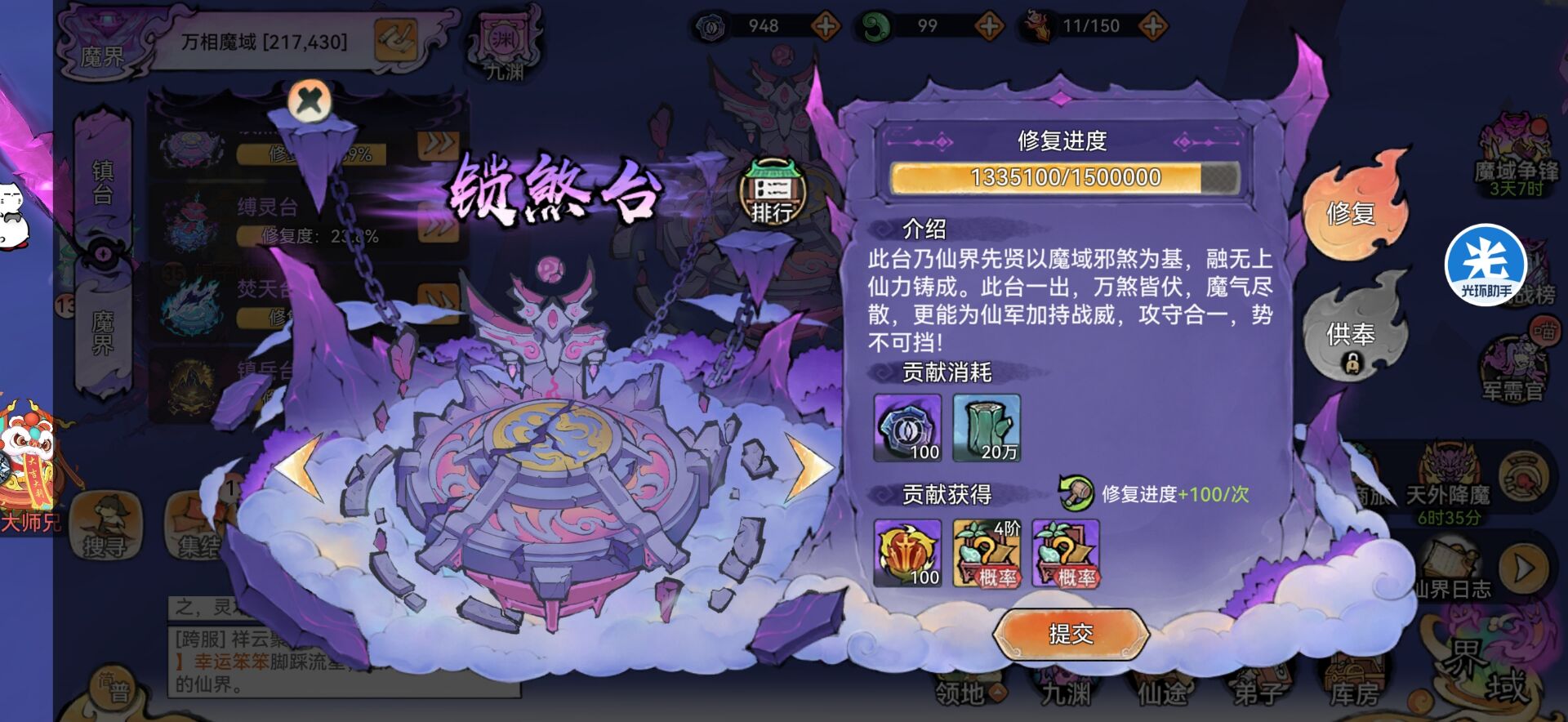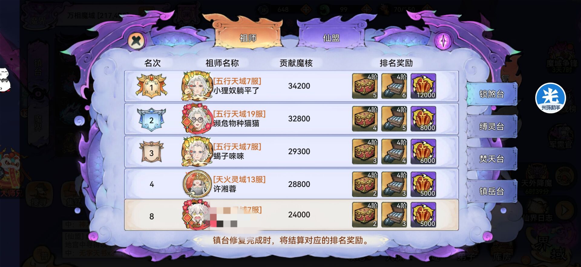 ②【魔物遗骸】要集中捐给一个台子。不要东捐一下,西捐一下这样反而拿不到排名的【4阶法宝】材料的奖励。
