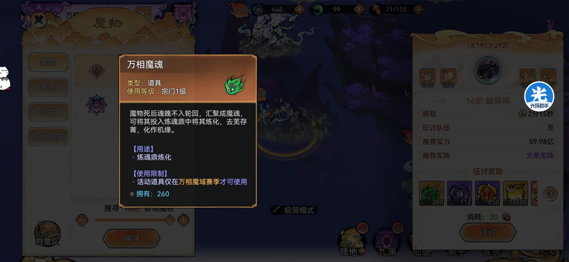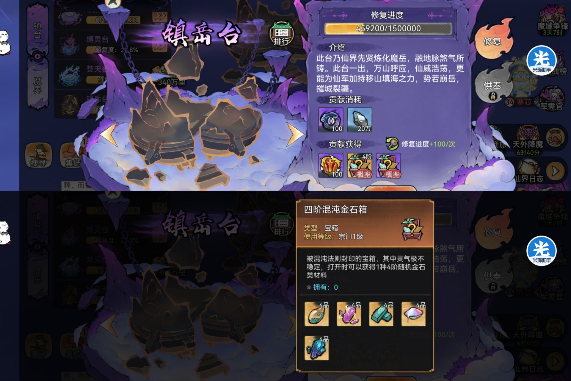 核心奖励是:【4阶法宝】材料,但是很难获得狮子捐了2.4万的魔物遗骸才拿到了1个4阶法宝材料。