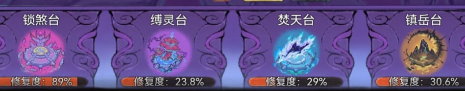①锁煞台。②缚灵台。③焚天台。④镇岳台。
