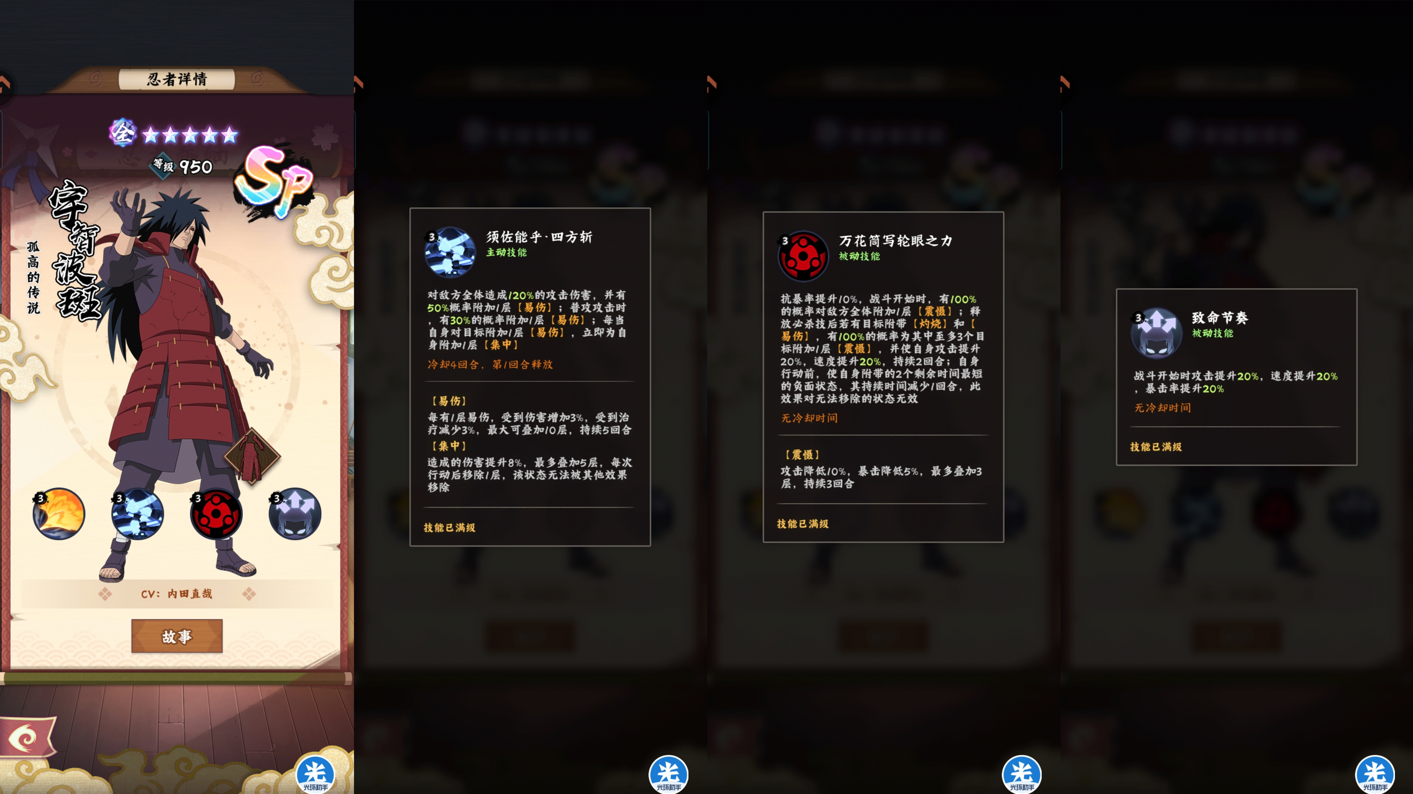 而且后续肯定还有更厉害的sp忍者登场的,大家也不用急,优先集中培养一个sp即可。