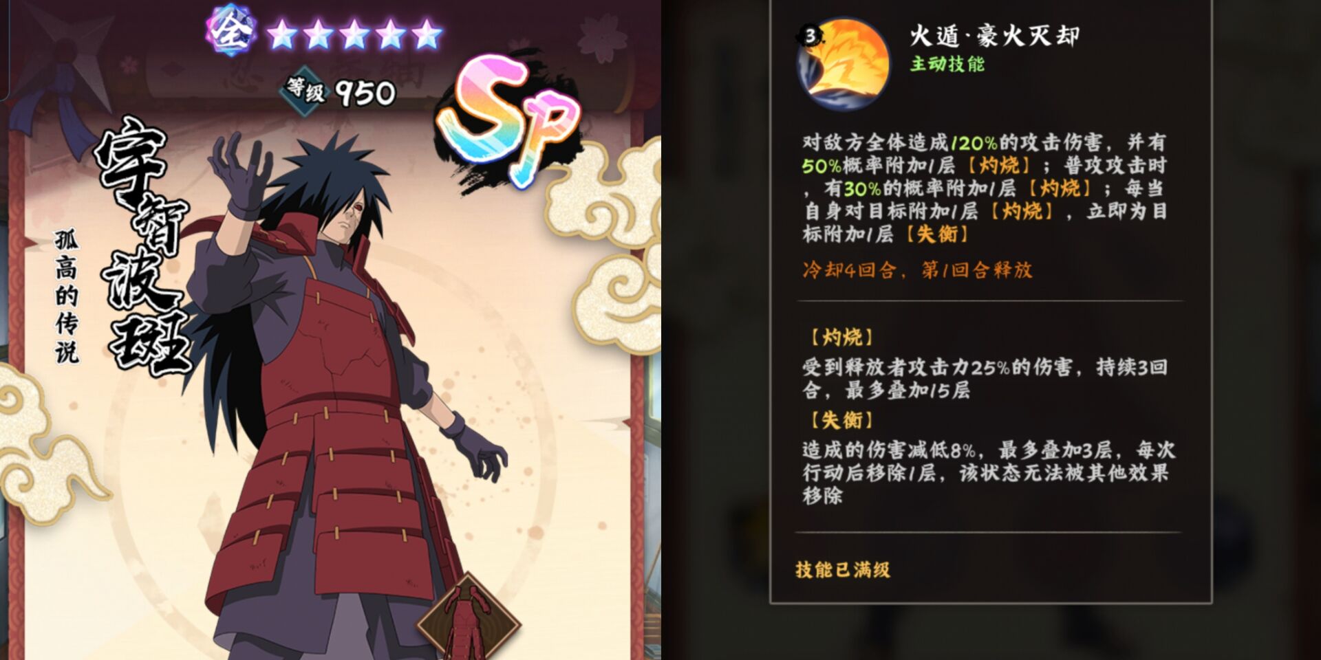 ⭐这里狮子要提醒大家:斑爷的【失衡】只能是自己的灼烧才能挂上去,像带土和自来也配合施加的灼烧无法挂失衡。