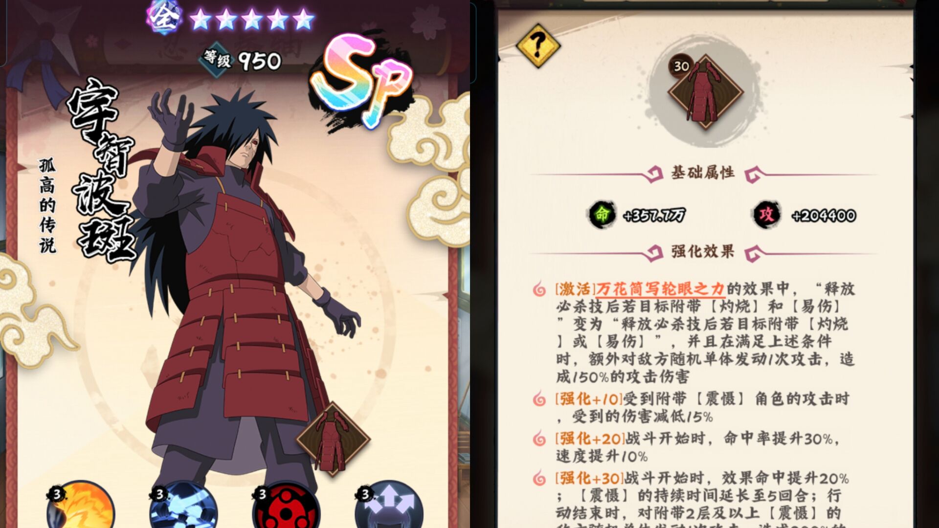 ②同时斑爷专武30级以后,追击能力很强,被动万花筒写轮眼和震慑效果都可以额外触发斑爷的单体追击伤害。