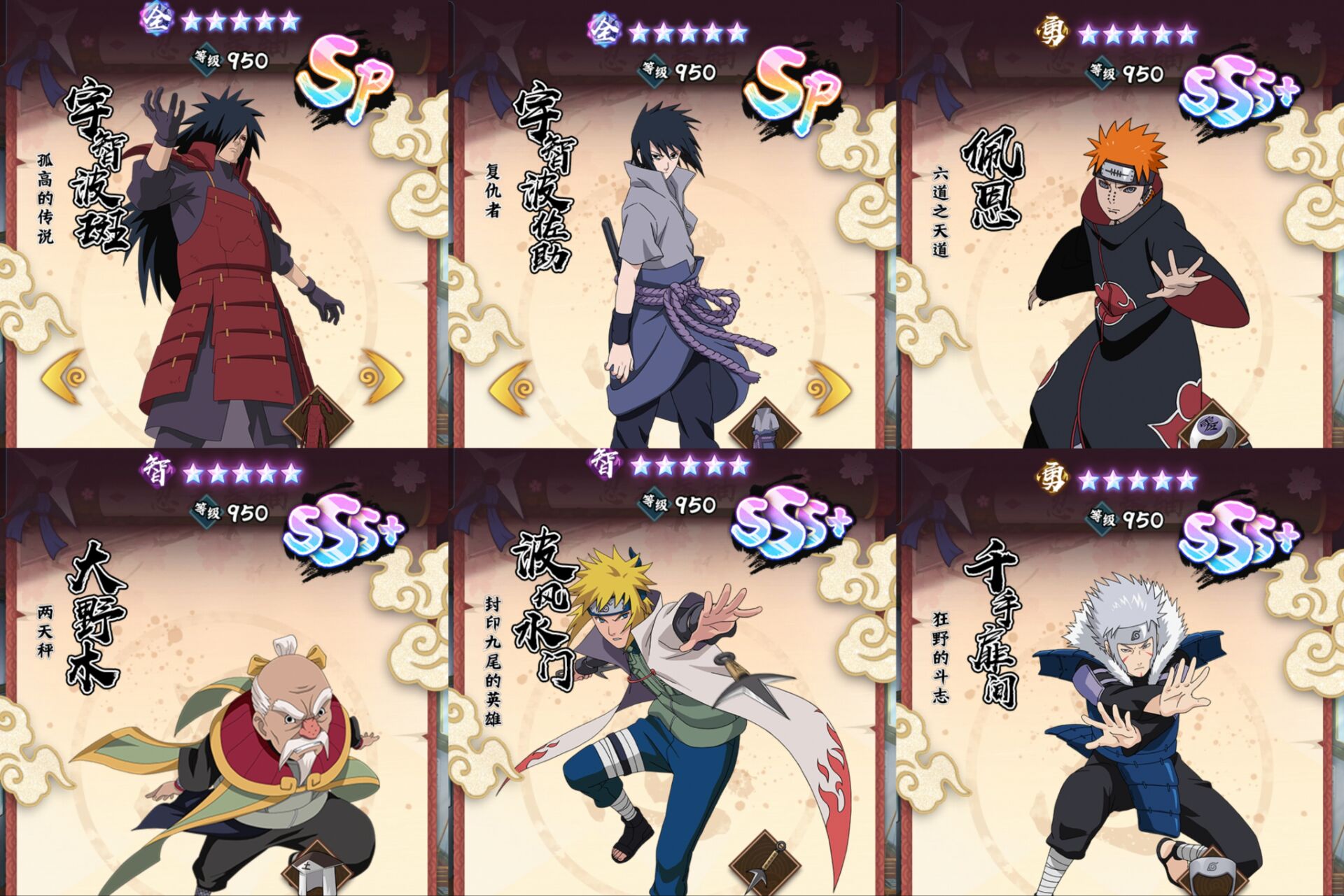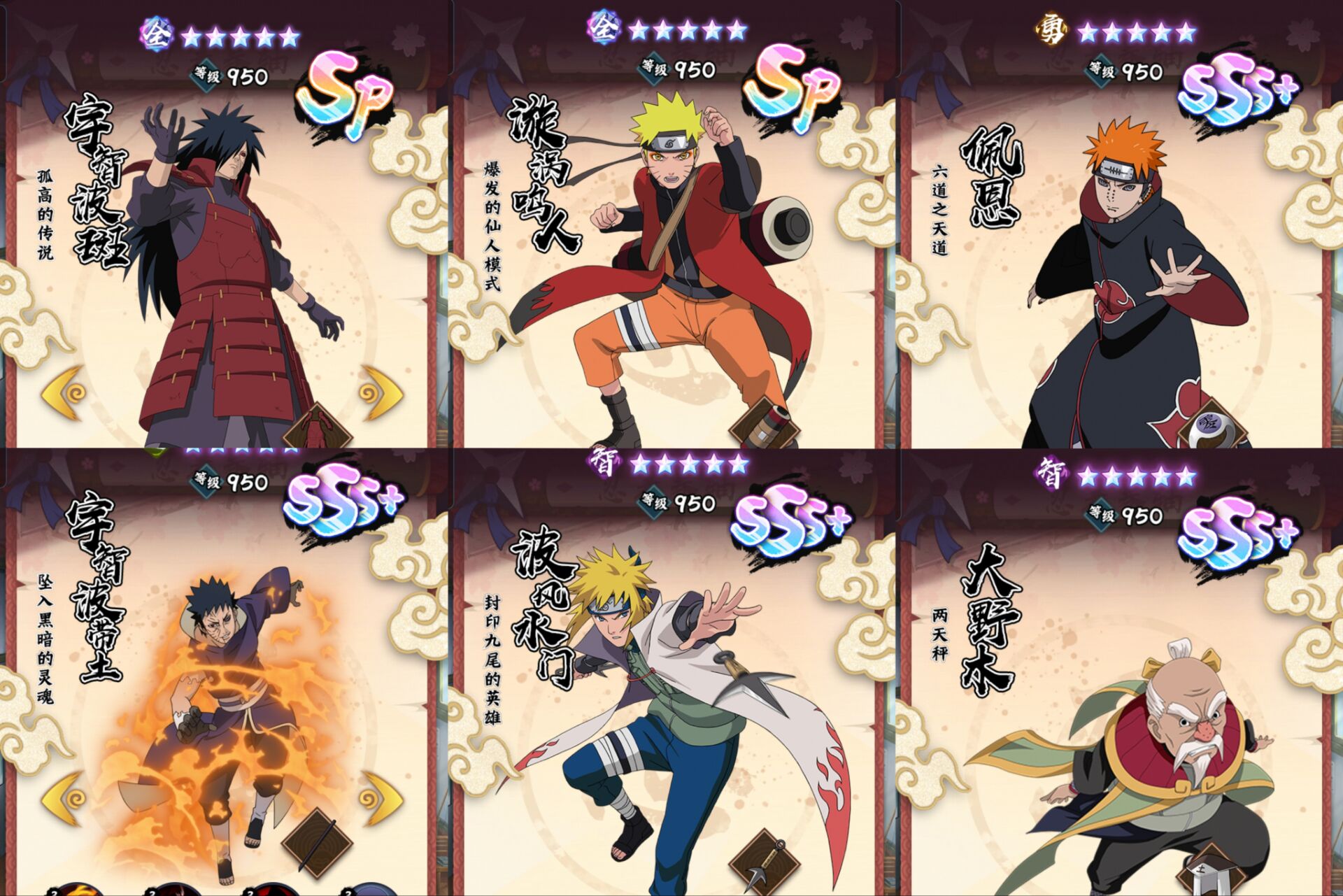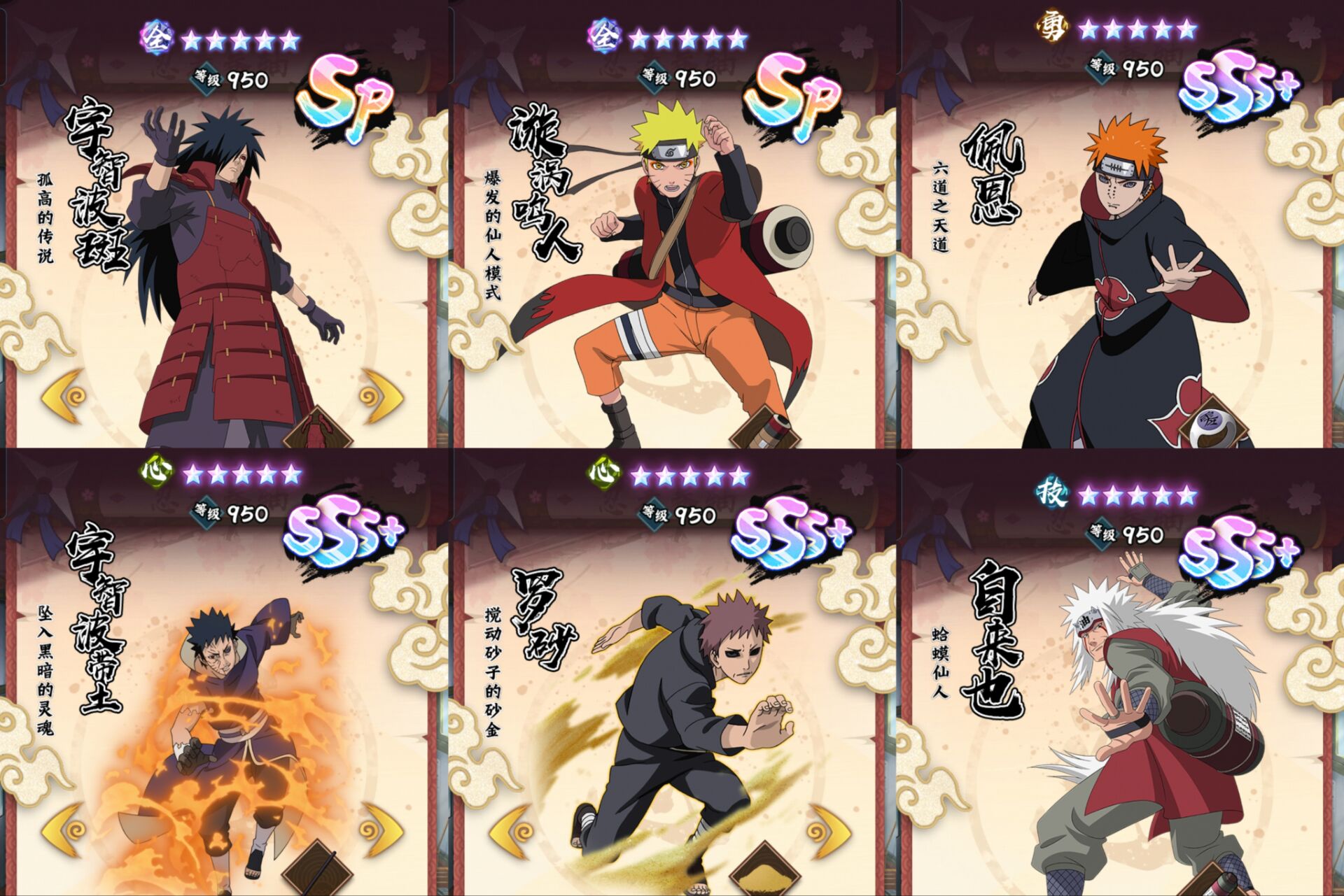 那么看了这么多有玩家会说了:狮子,怎么每套都有【带土】【佩恩】?没有带土和佩恩能不能玩呢?答:当然可以,但是没有带土和佩恩确实会影响斑的强度。
