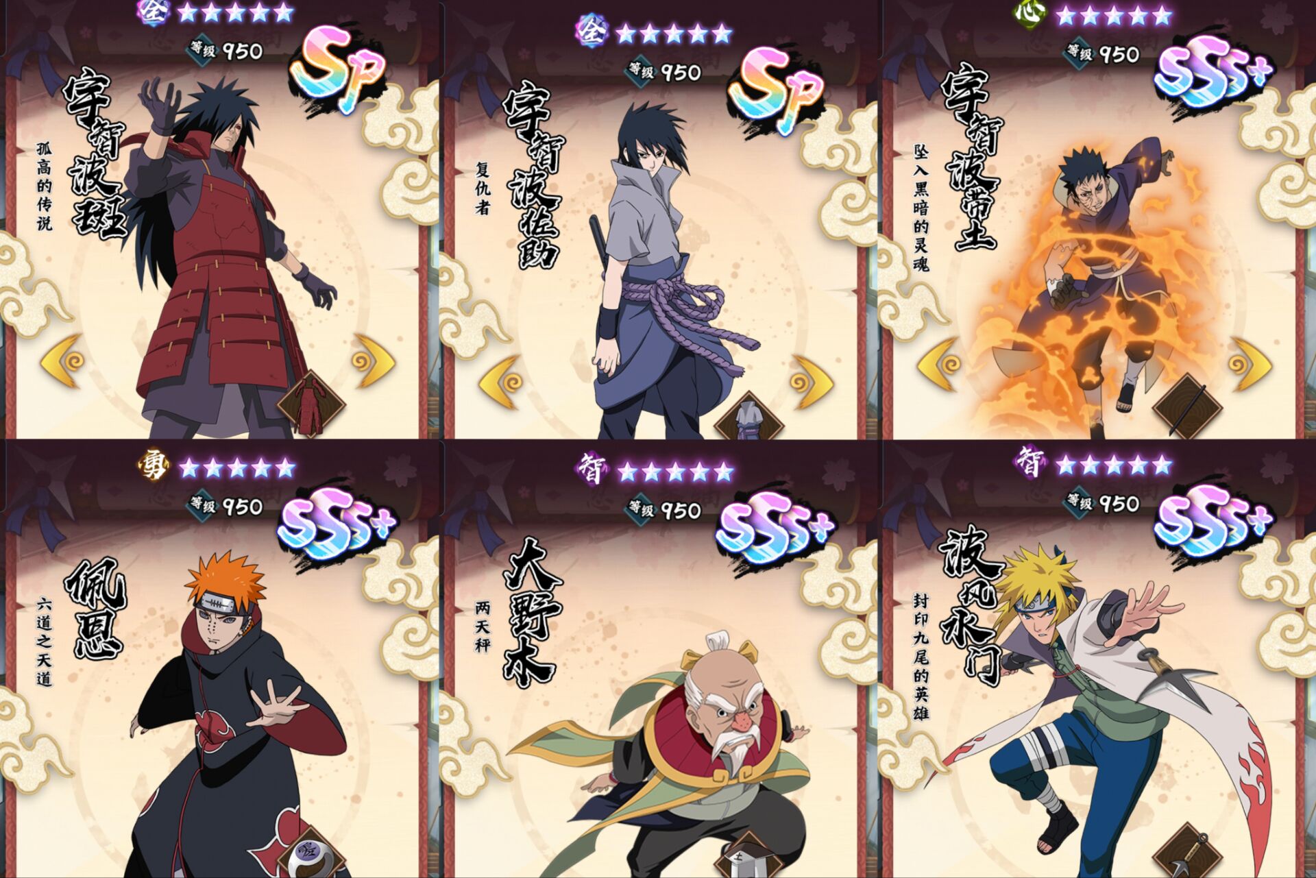或者这样搭配也可以:宇智波斑+佐助+佩恩+四代火影+猿飞日斩+四代雷影。