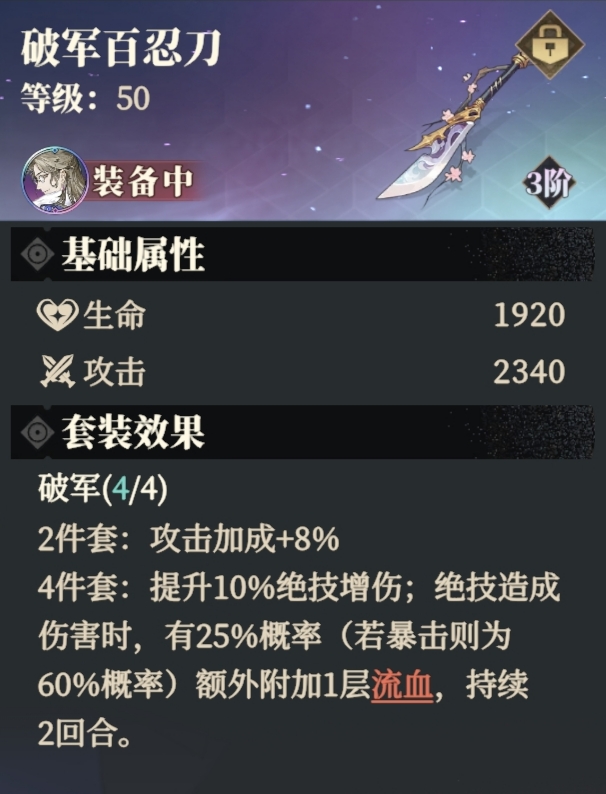 司马懿的伤害全部来源于绝技,破军套的绝技增伤非常契合。并且高频率绝技可以频繁为敌方附加【流血】,增加敌方驱散压力。另外司马懿自身的BUFF均为金色,不属于蓝色增益,无法吃到强魂套的加成。