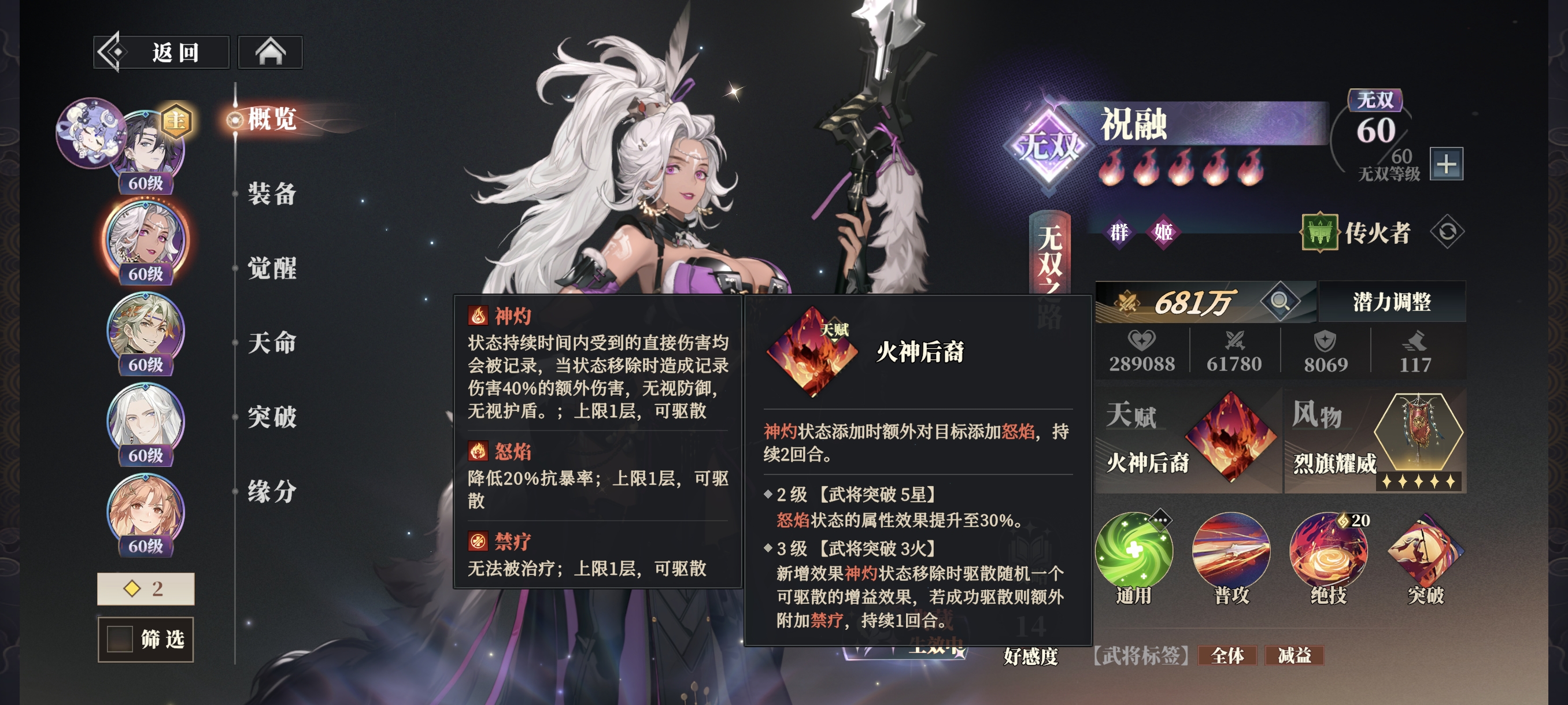 同时祝融还有非常稀有的禁疗能力,可以有效反制敌方治疗。