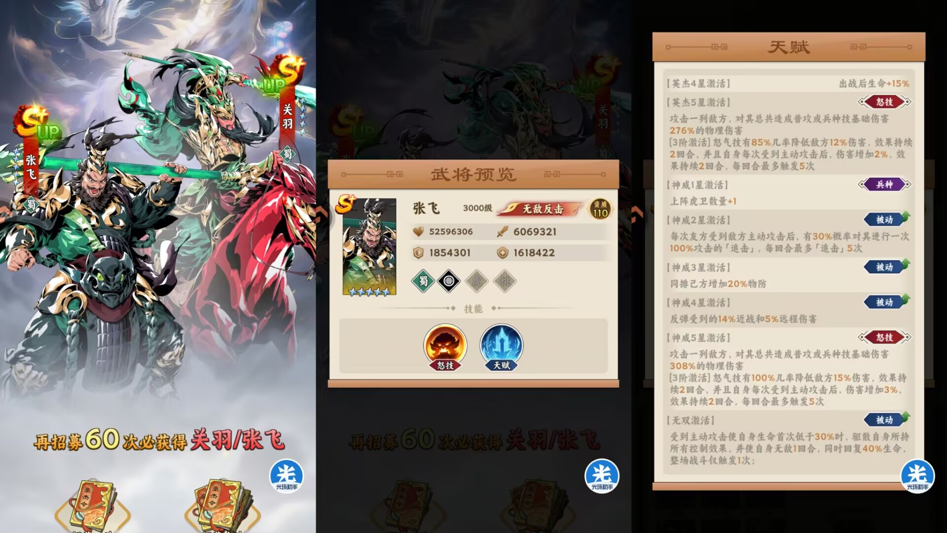 如果要抽狮子建议是英杰3星起步,因为才能够解锁保命无敌机制,发挥出张飞的最大作用。