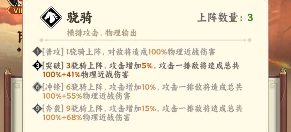 ①首先关羽+马超+徐晃:组成三骑士【突破】组合可以对敌人造成大量的伤害。