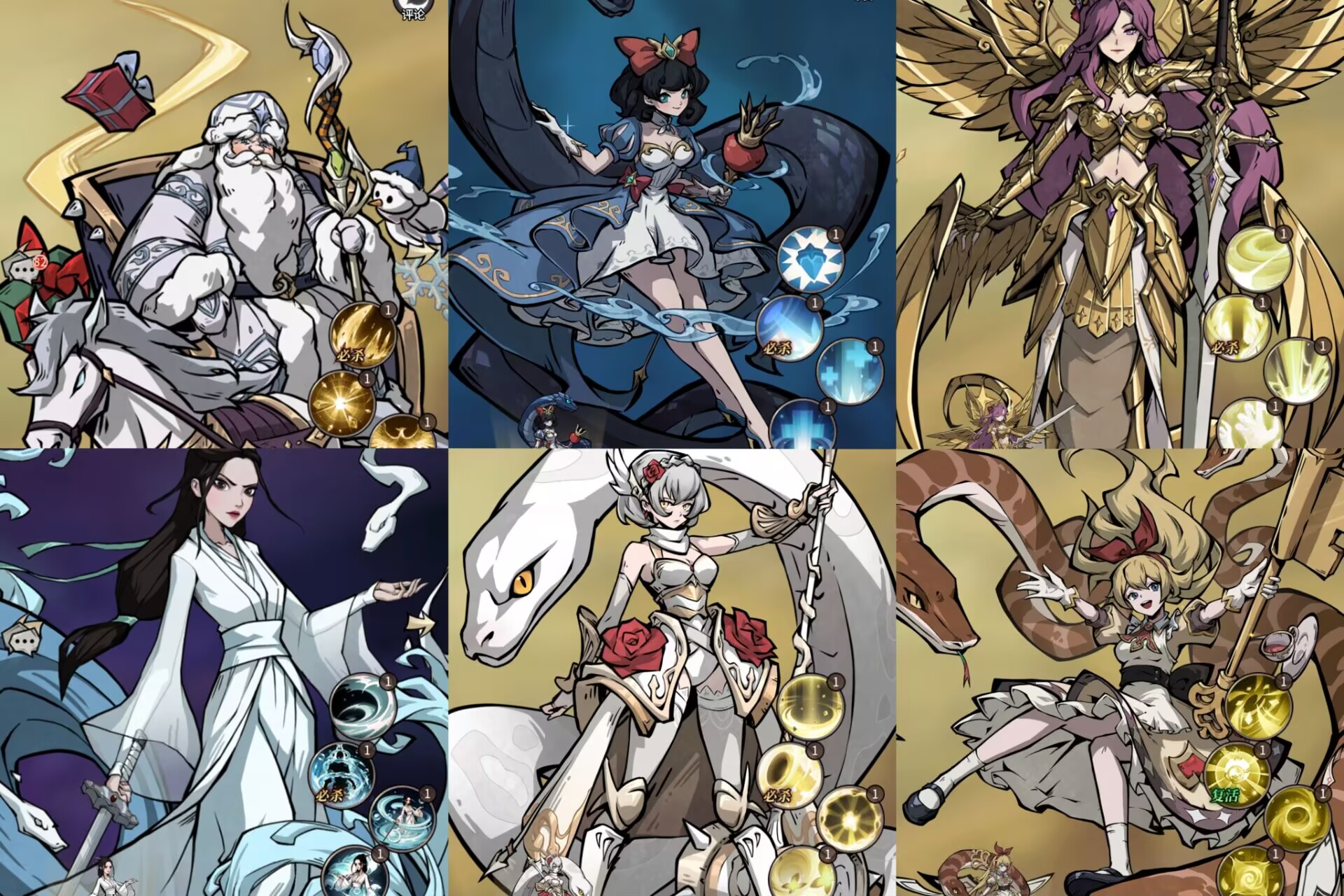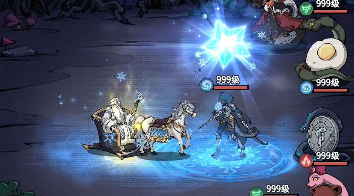 1:【严寒老人】初阶阵容配队思路。严寒老人+小小白雪+黄金女王+劫起白蛇+蔷薇贞德+爱丽丝。