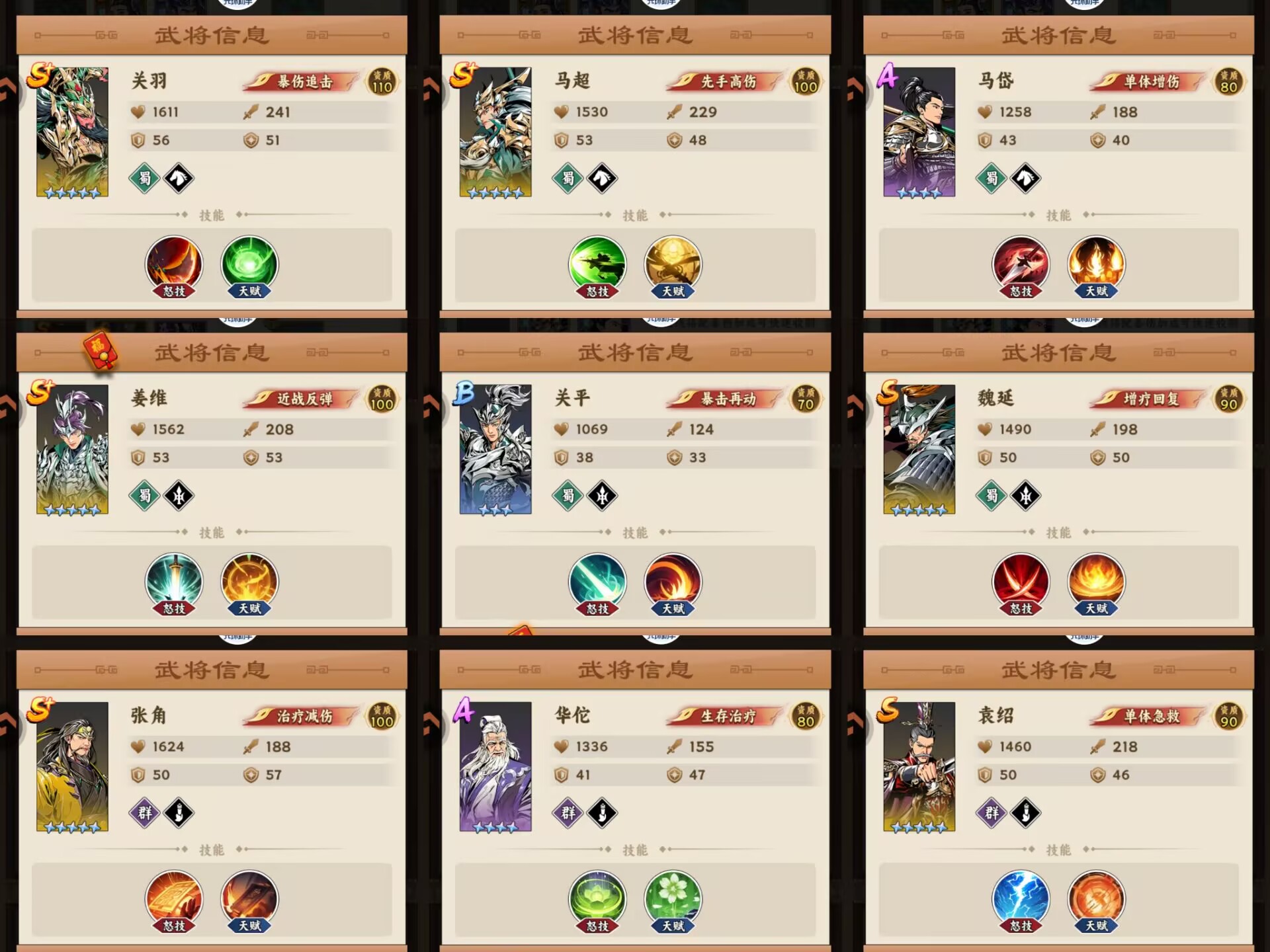 关羽+马超+马岱+姜维+关平+魏延+张角+袁绍+华佗