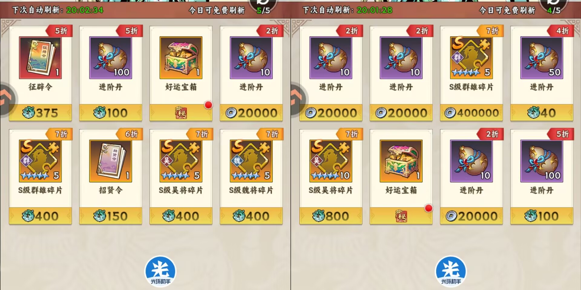 ①优先兑换:折扣的【征辟令】【招贤令】。