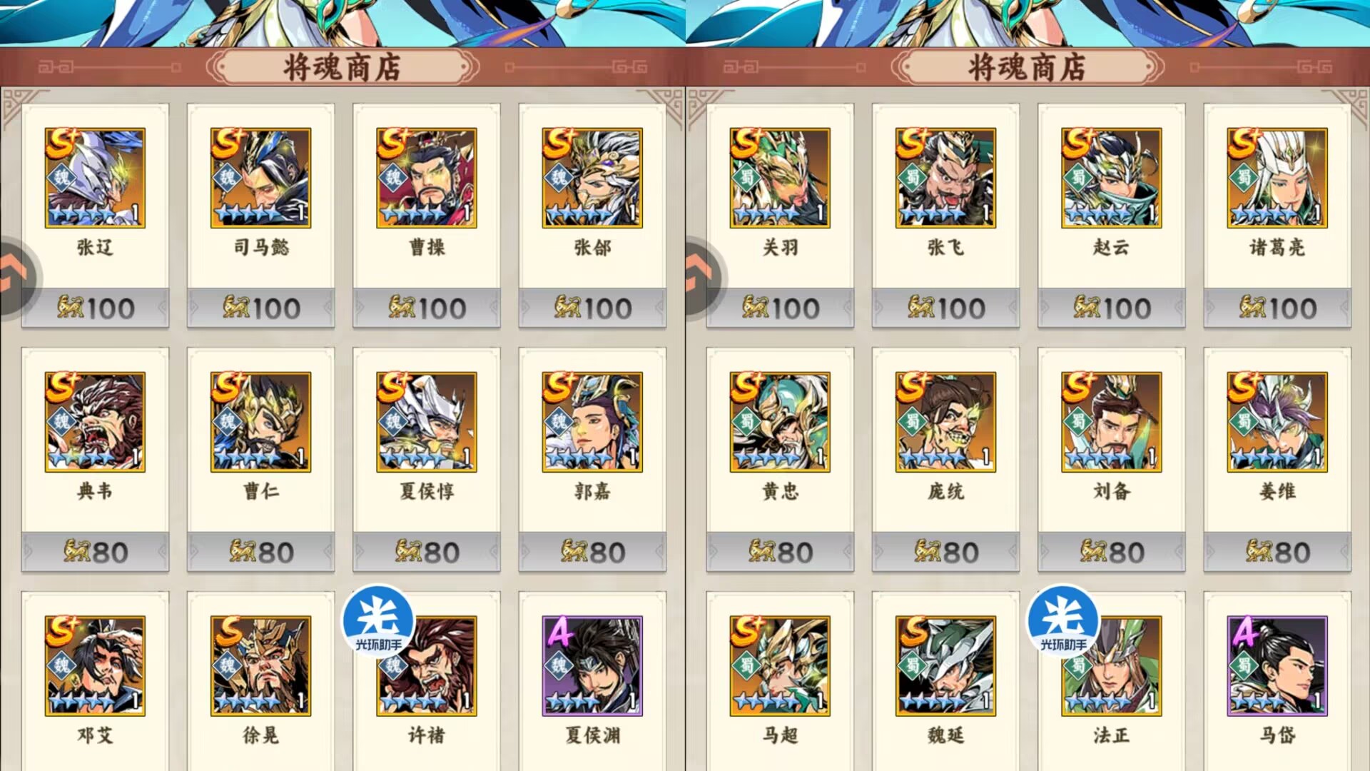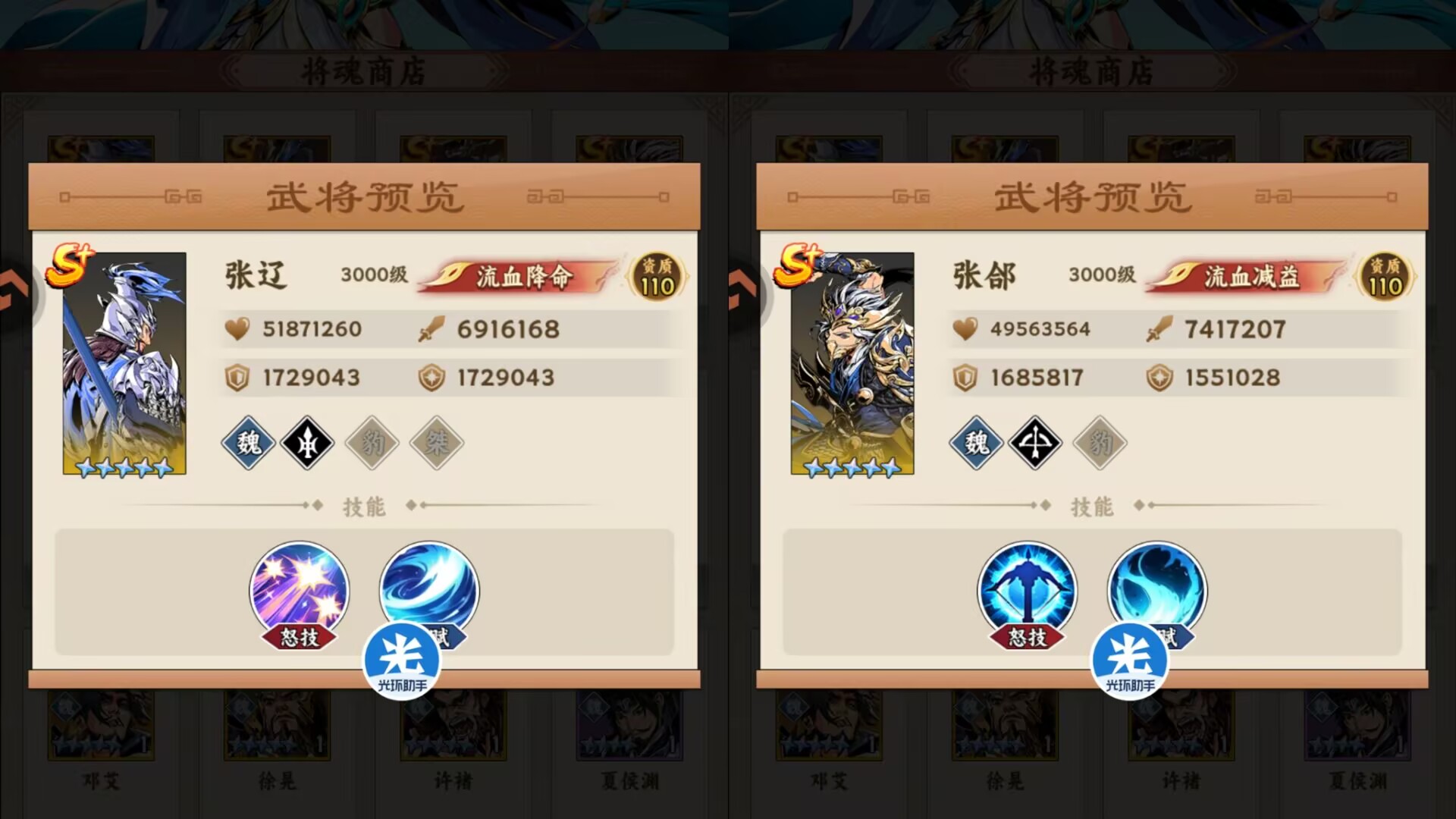 同理你要是主玩流血队,就优先兑换:张辽、张颌、夏侯惇等武将。