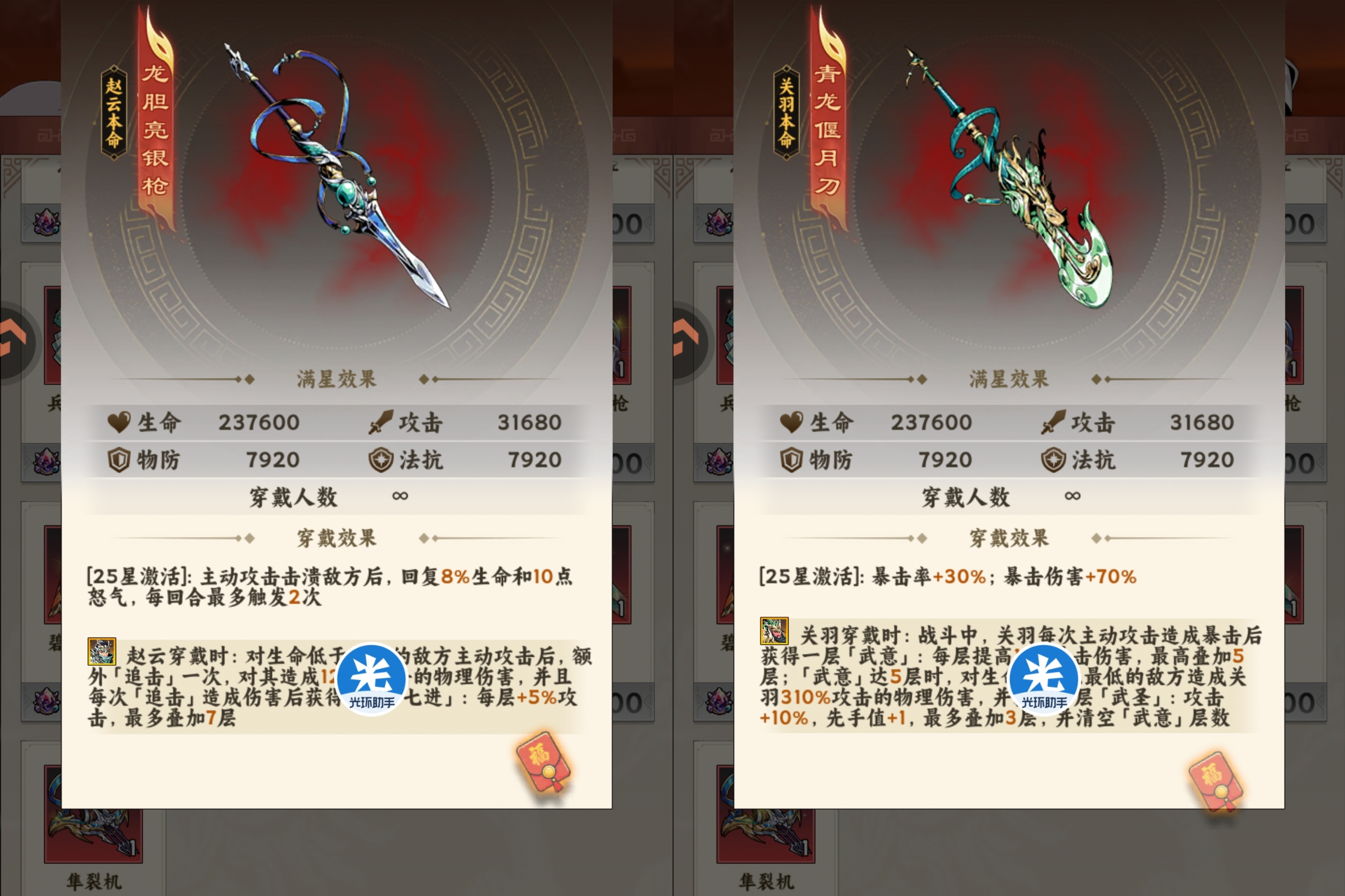 ⭐你玩关羽就优先兑换【青龙偃月刀】。