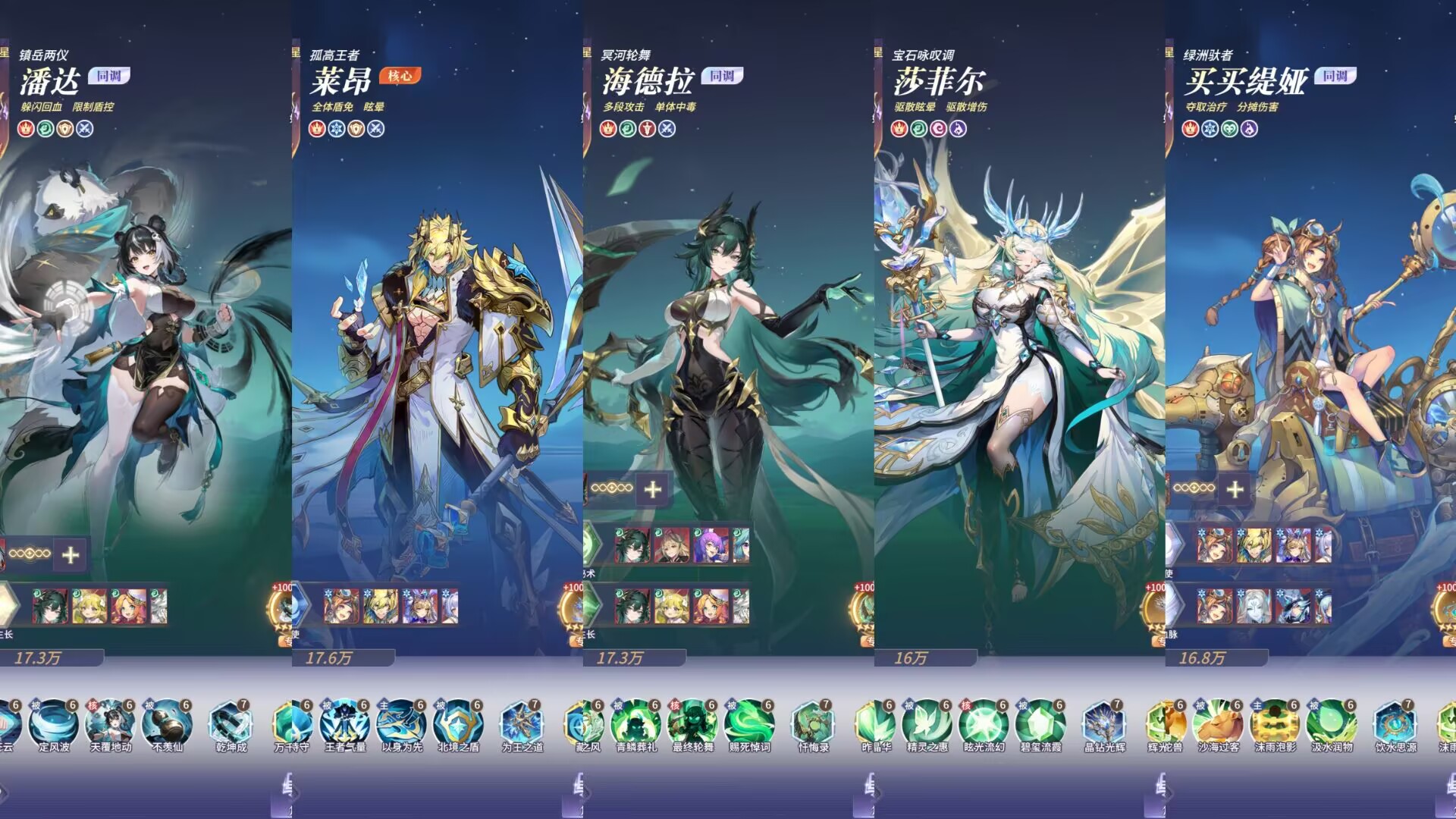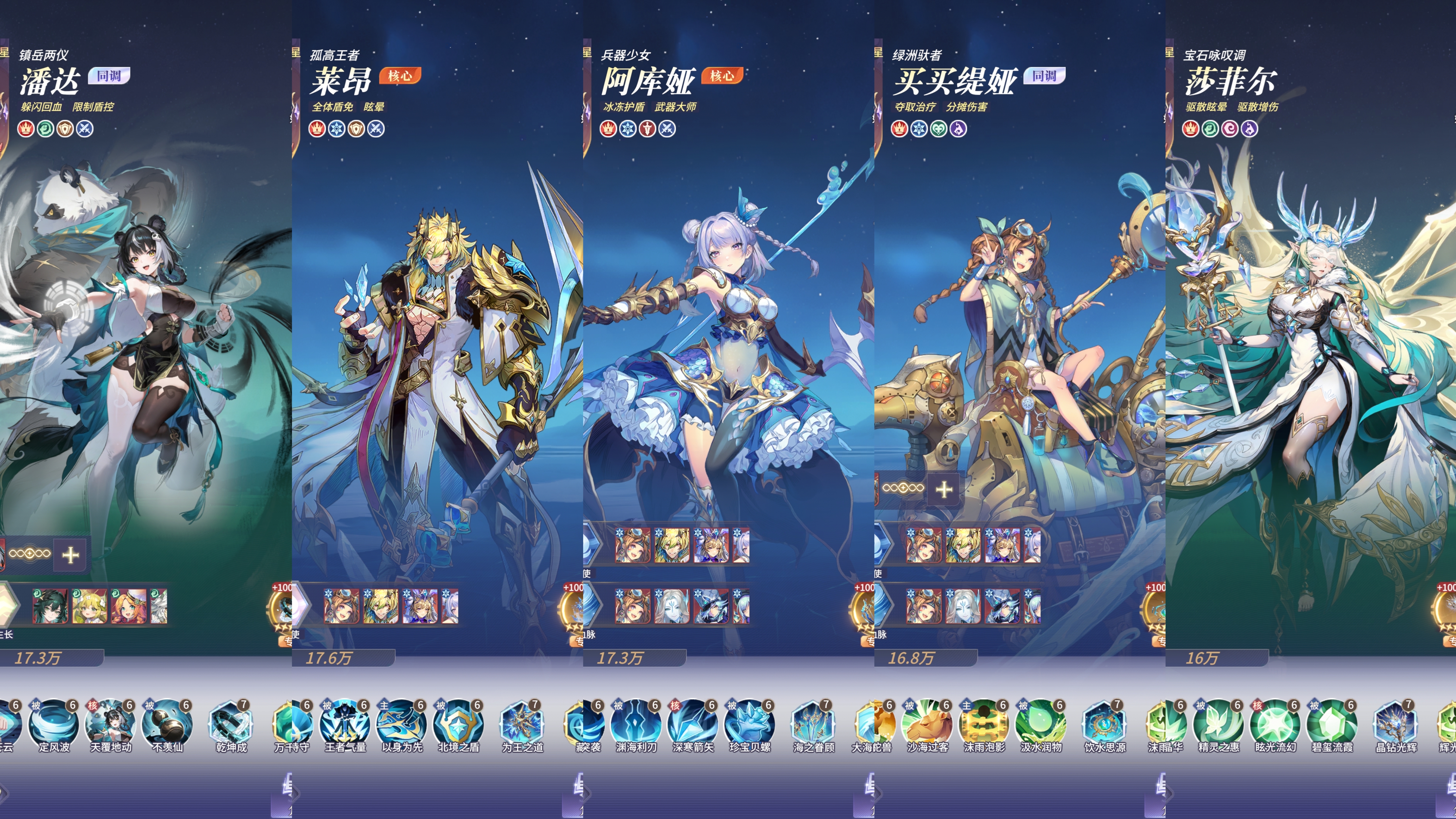 1:【潘达】融入冰盾队五保一体系(契合指数2星⭐⭐提升不大)潘达+莱昂+阿库娅+买买缇娅+莎菲尔。