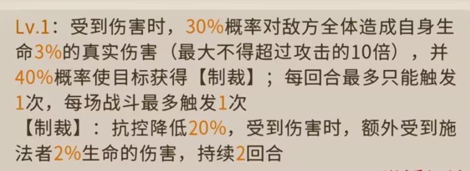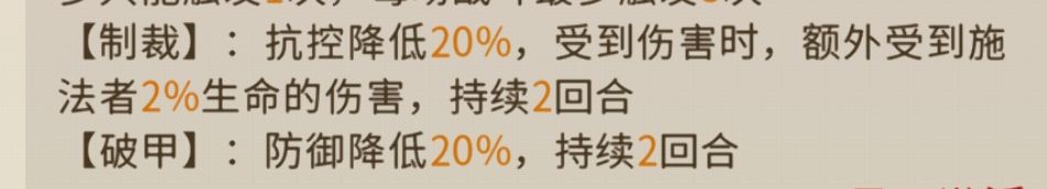 都是40%概率触发制裁,同时也是降低20%抗控,然后会额外受到攻击者2%生命伤害。