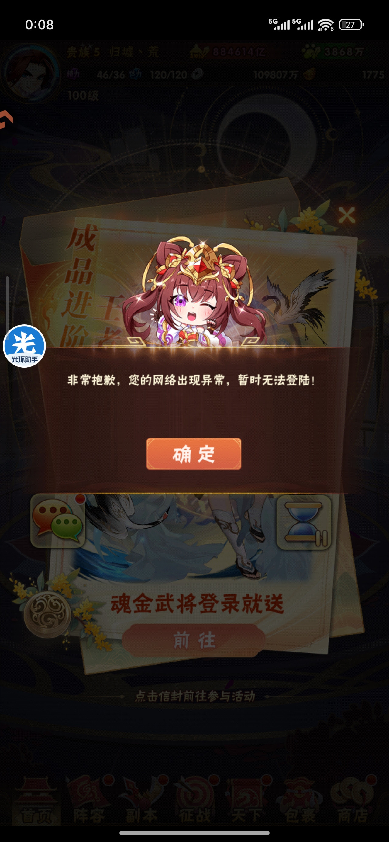 网络很好,刷视频看动漫猛猛的,就是登录不上游戏,这两个来回提示